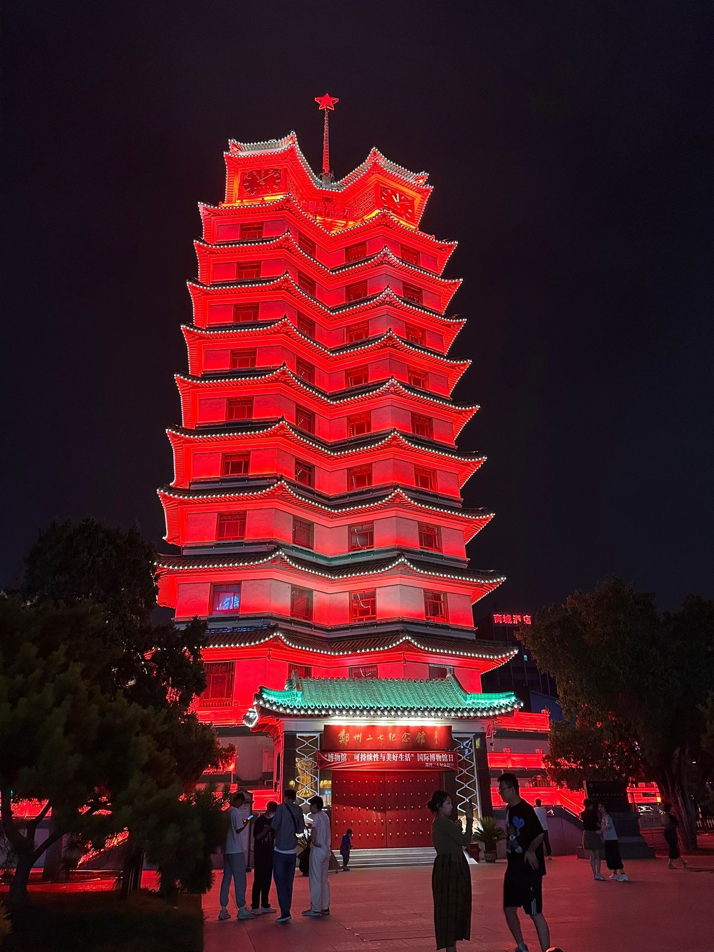 1、二七广场:地标建筑二七纪念塔,可上塔观景,整点有《东方红》音乐报时,晚上通体红色灯光,23点熄灯。
