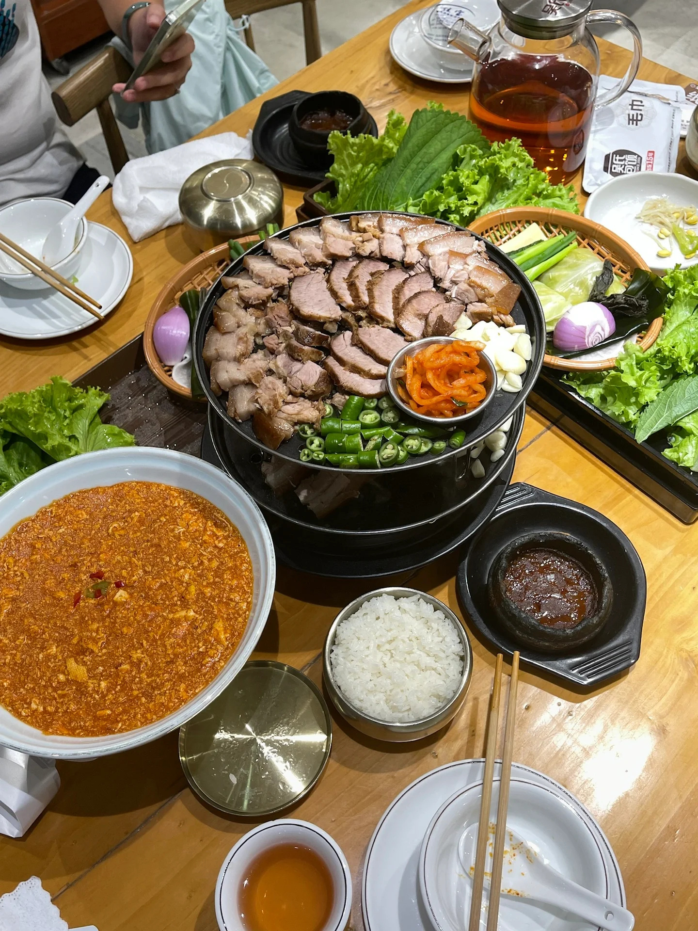 【晚上】吃的是吴式包饭,有套餐分量很多,基本吃到一半就开始有点腻了,但是不得不说这边的餐厅随便一家都好好吃呀!