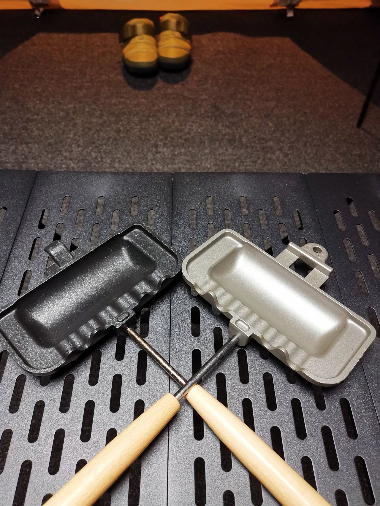 超精致!户外露营三明治烤盘夹太好用啦4W1H三明治烤盘早就心仪已久无奈太贵啦,现在终于有国产同款了 材质压铸铝材质带不沾涂层,可拆卸,带封边,双色设计更好的分辨哪面烤好了哪面还没烤好,大小适中非常可爱 女士或者小朋友一个人吃一个刚刚好,男士也可以做两个,可以夹各种蔬菜水果沙拉火腿芝士玉米鸡蛋等等 不光是露营,家里也能用,简直是早餐神器。颜值更是超级能打,随便做个三明治超级出片,非常推荐