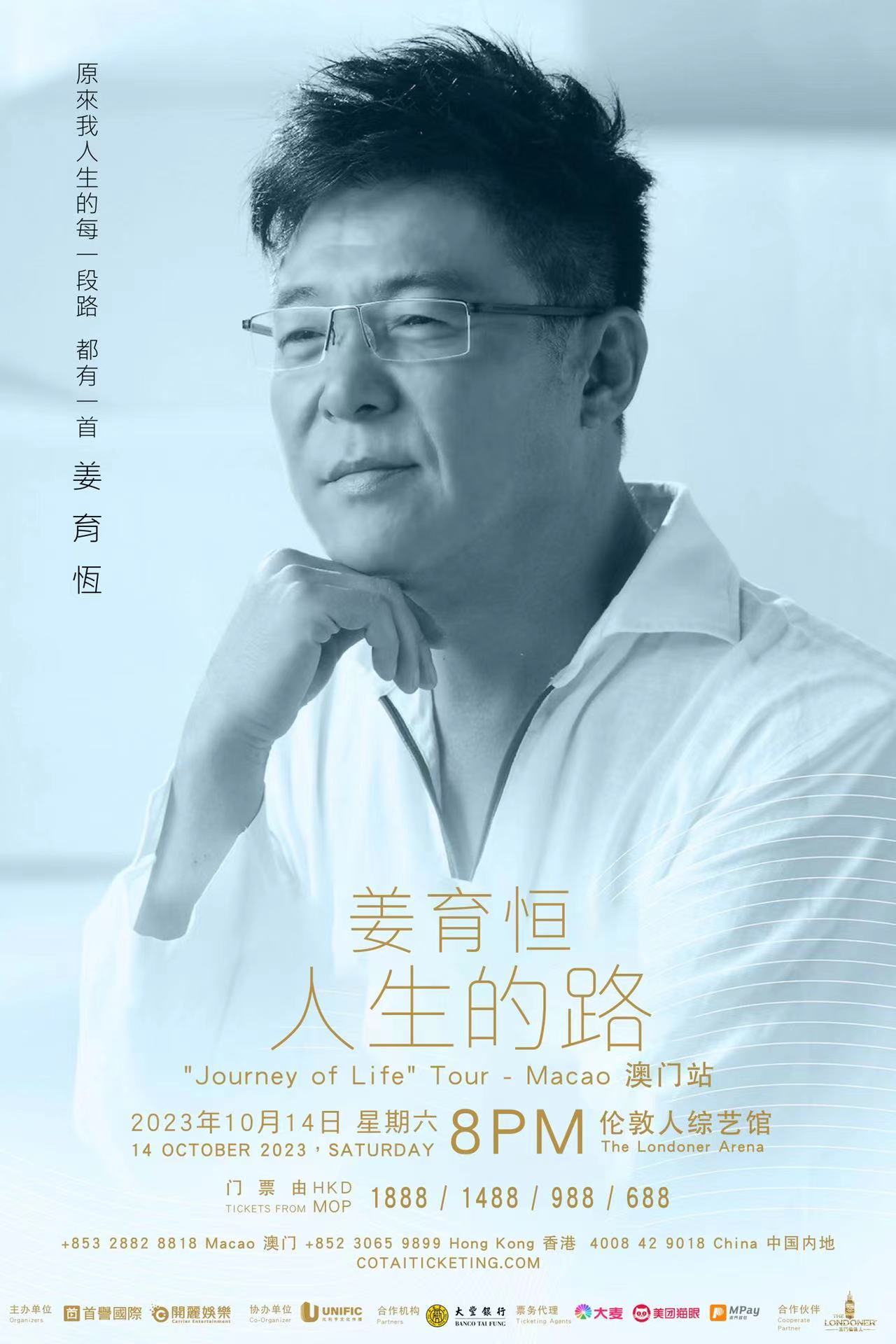 #姜育恒2023人生的路巡回演唱会# 姜育恒出道40周年全新巡演首站10.14在澳门举行!真的是一整个让人期待值拉满,出道这么多年姜育恒也是带来了很多经典的作品呢!#澳门伦敦人# ​​​