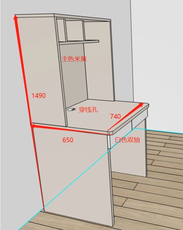 书桌的整体1.49米,与上床同面设计,站起来也不会撞头,740的宽度写字看书也足够,书桌自带储物抽屉,孩子的书本笔也有地方放。