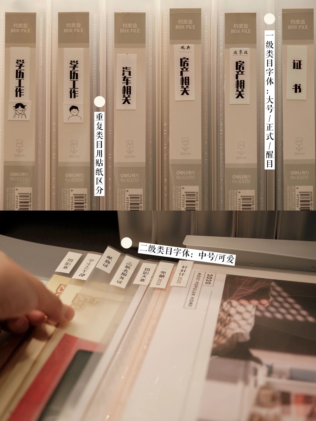 无论一级分类还是二级分类,贴好标签才能真正一目了然,更方便查找不同级别类目标签可以用不同字体做区分,比如一级类目用比较正式的字体,二级类目可以稍微可爱一些,加上贴纸可以更好的做区分哦