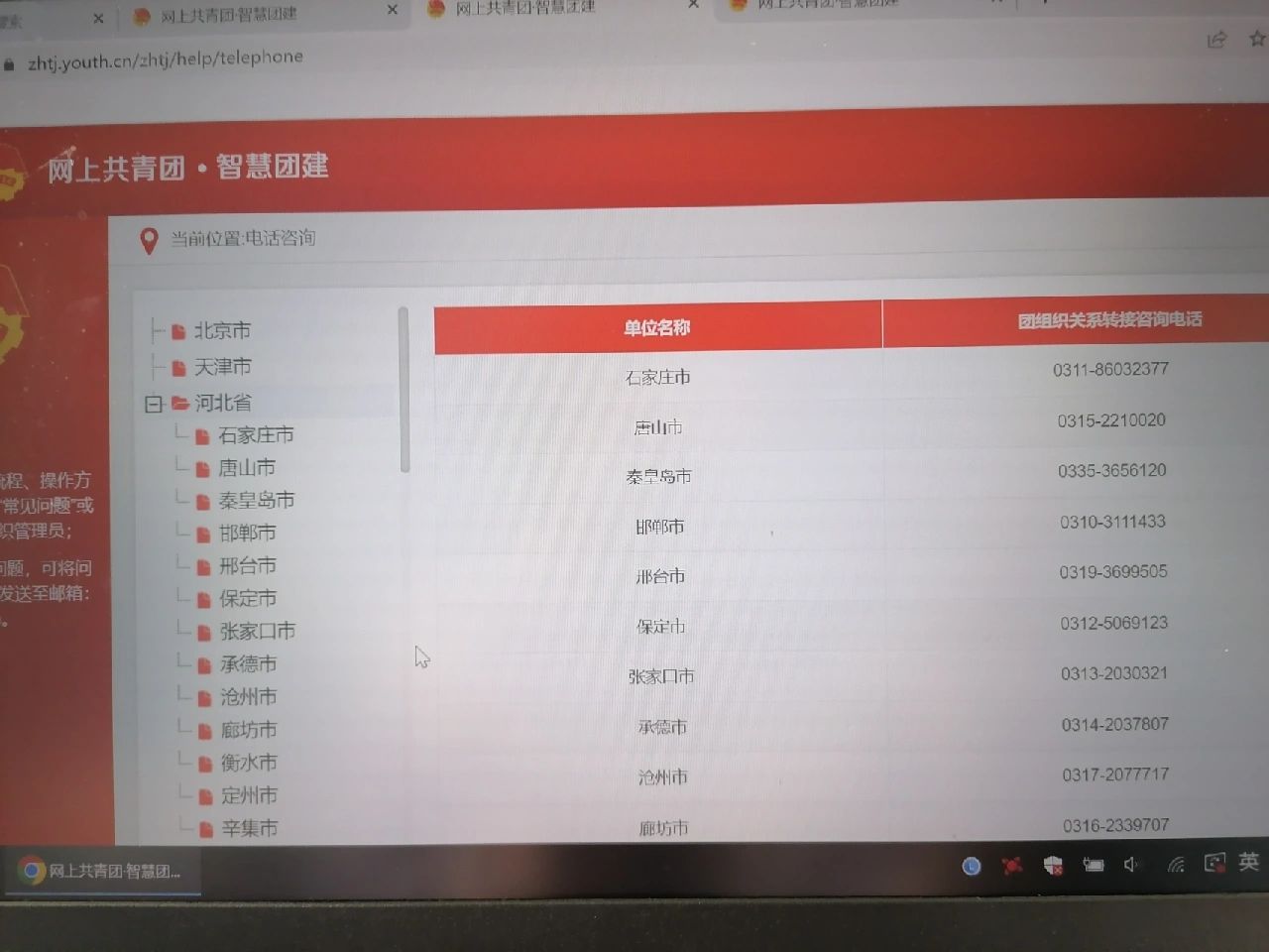 划重点了。电脑进入智慧团建网页,上面有各省市咨询电话,直接找到自己所在市的电话拨过去说明情况。需要你提供的信息只有自己的身份证号,人家一查就知道。然后我们就会得到两个至关重要的信息。一是确定当前团组织关系所在地,二是重置智慧团建密码的关键验证码。