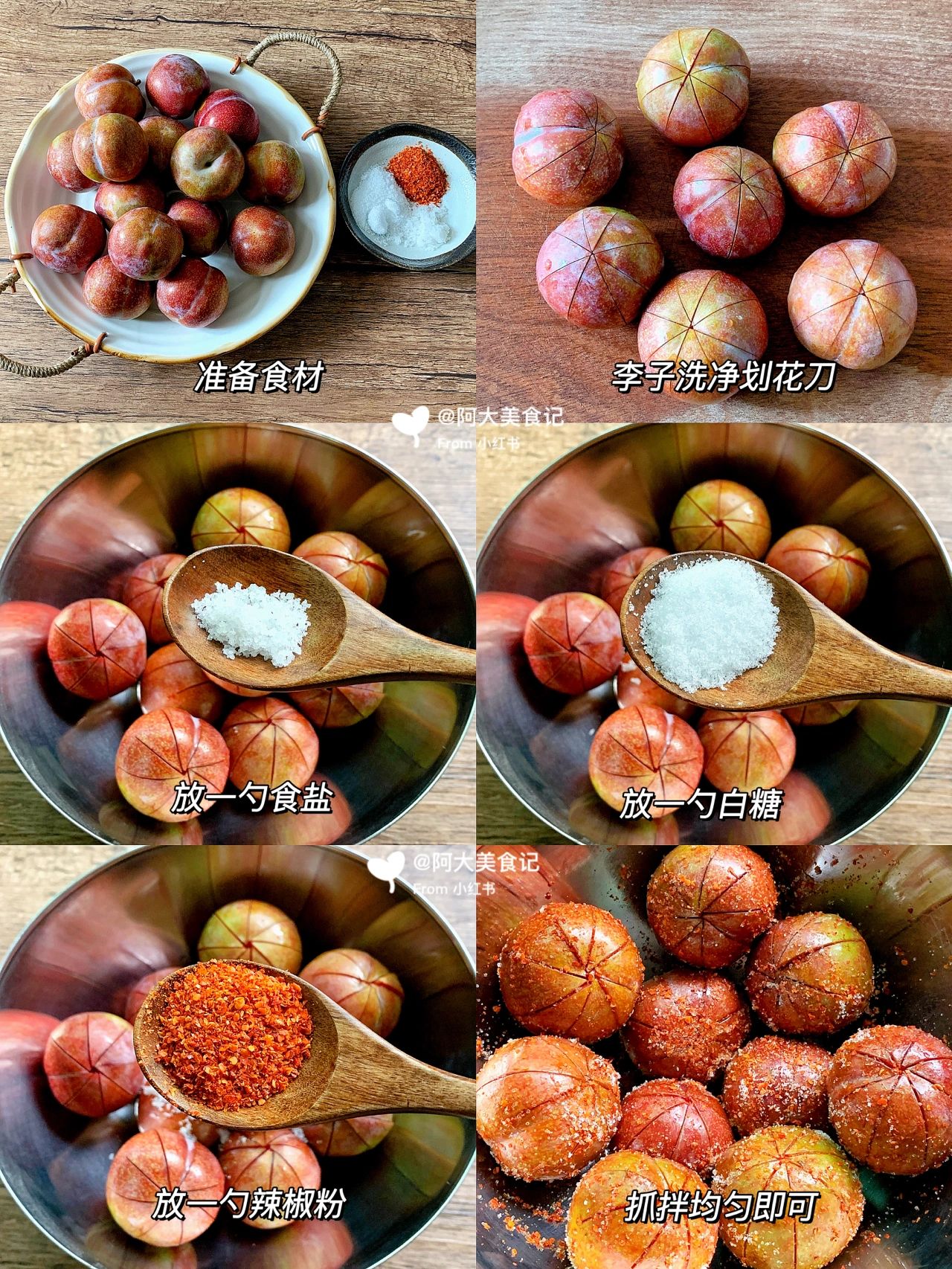 成功打卡了腌辣李子,酸辣开胃超好吃,做法巨巨巨简单,再搭配一碗汤汁浓郁的肥汁米线,简直太过瘾了,快来试试吧! 食材: 李子,食盐,白糖,辣椒面。 做法: 李子清洗干净,然后划花刀,加入食盐、白糖,辣椒面搅拌均匀就可以开吃啦~ 接着再煮个肥汁米线 米线冷水下锅煮上8分钟,捞出过冷水。 锅中倒入开水➕大骨汤➕炸肉酱料包煮开(醋汁、魔鬼辣椒粉适量添加)。 米线放入碗中,撒上黄豆芽,香菇,炸响铃,葱花,倒入肥汁浓汤即可。 搭配辣腌李子一起吃,简直是完美搭配,真的超级好吃