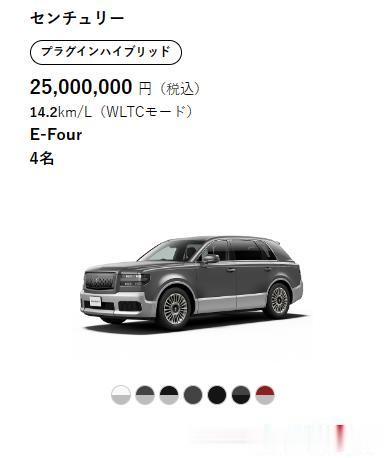 丰田大四座豪华SUV世纪终于正式发布了!这个造型怎么“南里南气”的?动力部分,新车搭载3.5L V6 PHEV插混系统,综合动力输出412马力,纯电续航可以达到69km,不过行李箱容积仅为340L。丰田此次也一并公布了新车的售价:2500万日元(约合人民币124万元)。那么问题来了,这款车会引入国内吗?如果引入国内,也会加价吗?