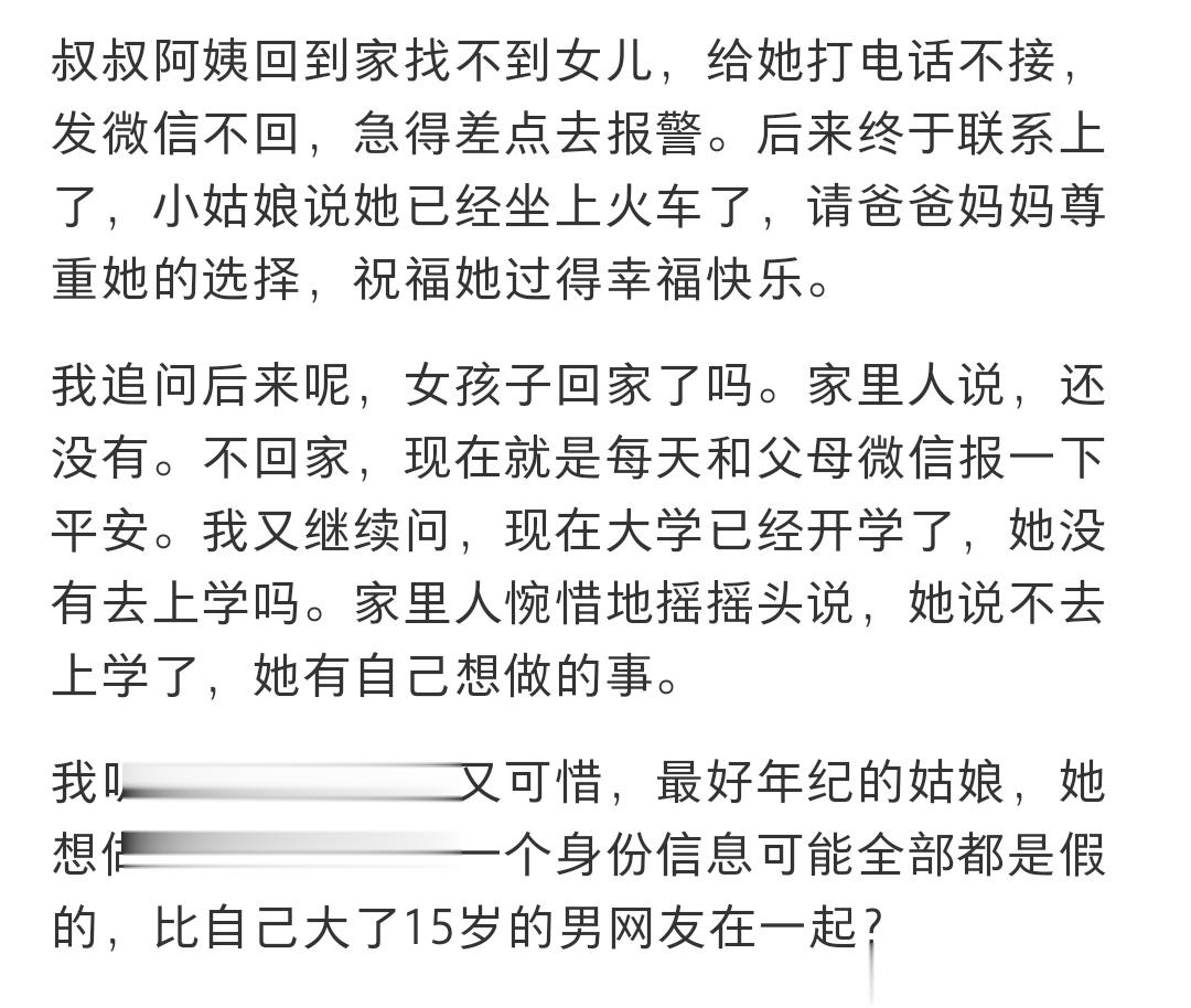 邻居家的小姑娘跟比她大15岁的男人跑了
