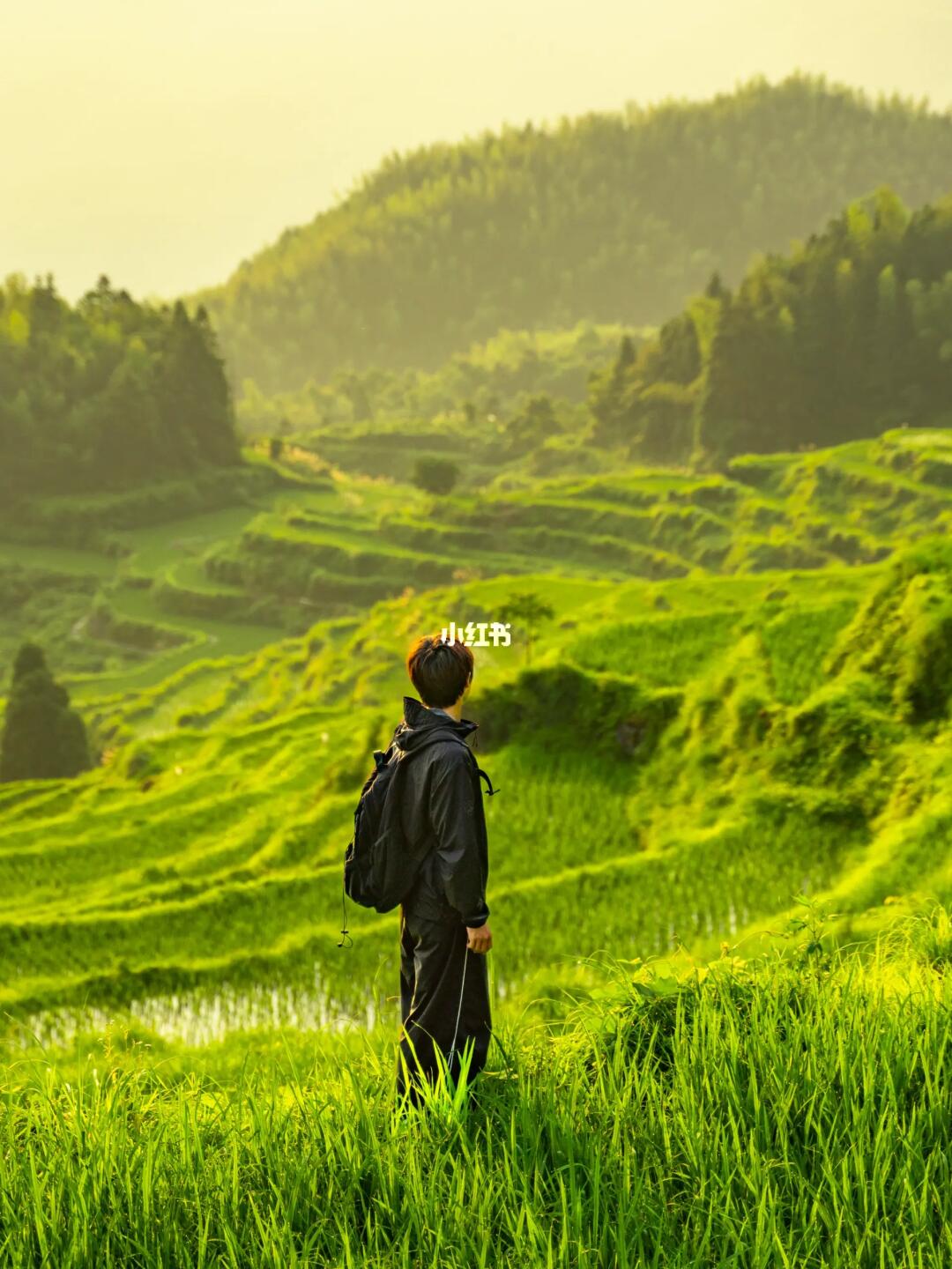 白银谷景区里的一个小村子,在梯田中间也挺美的