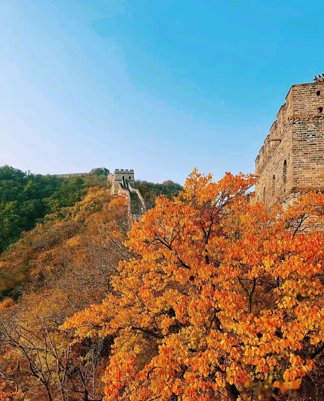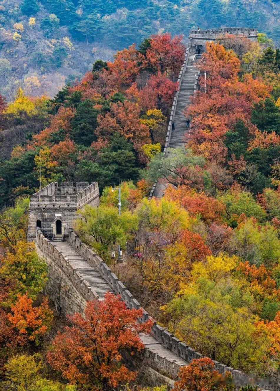 慕田峪长城的秋季,真的是万山红遍,层林浸染,放眼望去,其蜿蜒山间,无数红叶竞秀,有元宝枫、黄栌、火炬等七八个品种、数万株…… 金秋来临时慕田峪长城所在的山野之中,红叶带渐次染色,色彩斑斓的红叶映衬着雄伟壮丽的长城,勾勒出一幅幅如诗如画般的金秋胜景。 #镜头里的秋天有多美# @松鼠派本地社