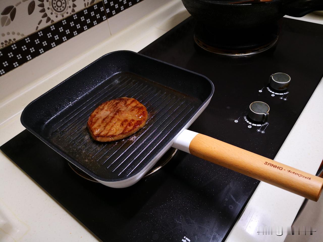 【牛排就应该这样吃!!!】 牛排又叫牛扒,是片状的牛肉,是西餐中的最常见食物,主要的烹调方法以煎和烤为主。今天就分享一个牛排的好吃做法。 1、买回来的牛排先解冻。 2、起锅刷油,最好用黄油,这样煎制出来更香。这里的锅我们用的是《中餐厅》同款三禾不沾煎锅,温度最好调至中小火,一个是节省天然气,另外煎制出来特别的鲜嫩。 3、油热放入牛排,牛排煎至八成熟,放入料汁和圆葱,充分吸收圆葱的香味后,关火出锅。