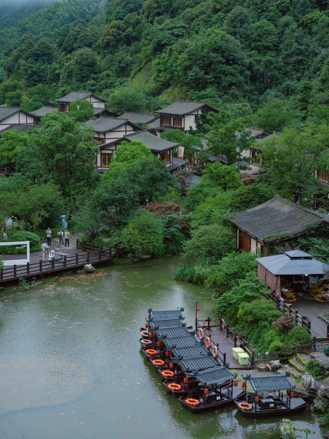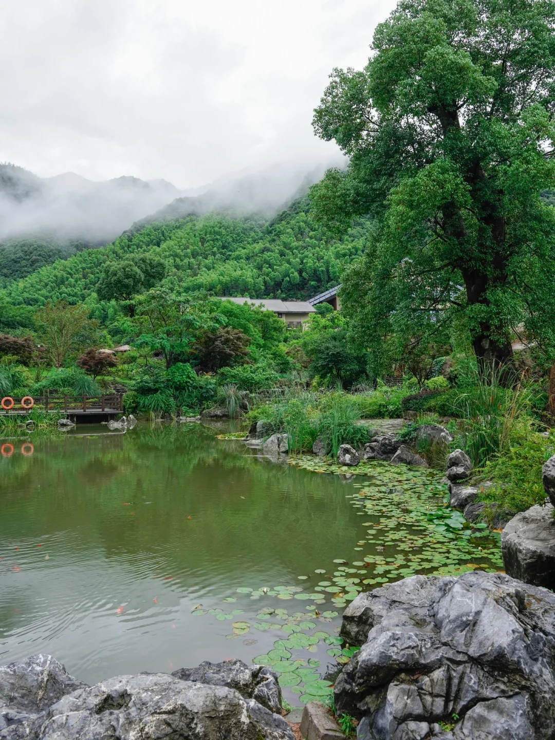 白天可以拍到游人在烟雾缭绕的湖上泛舟