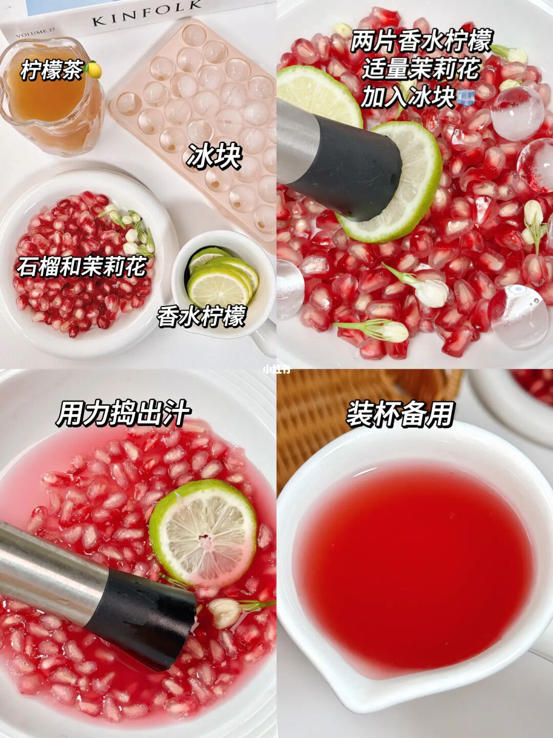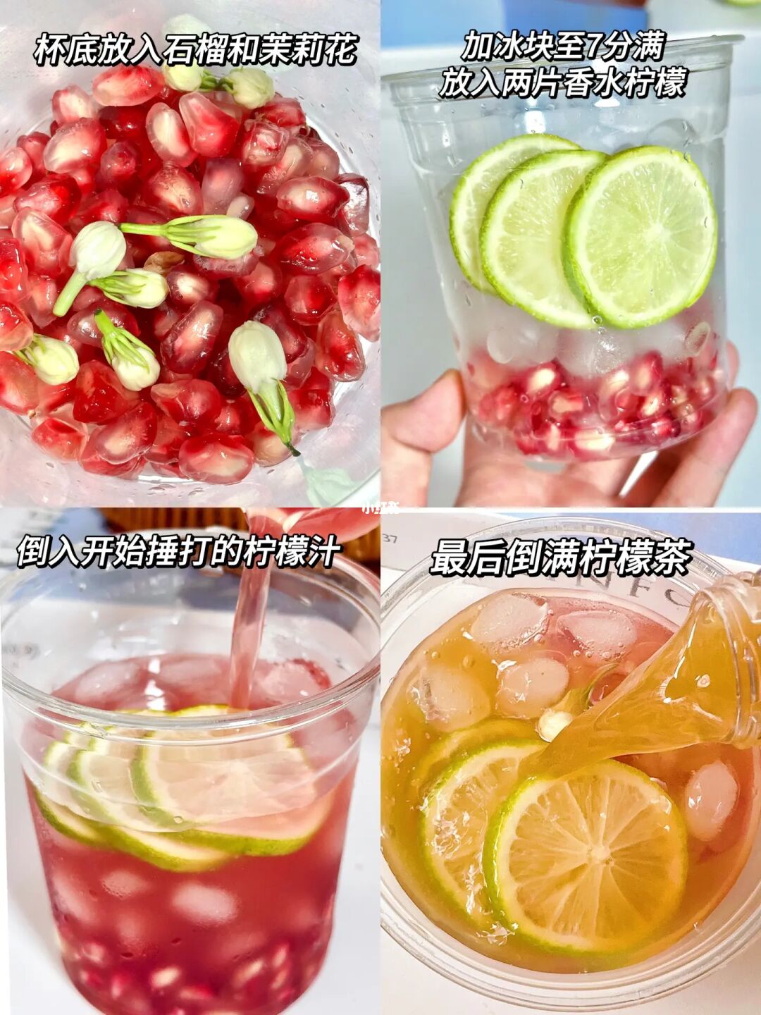 石榴茉莉花柠檬茶!太好喝了🆘真的太好喝了! 💕粉粉嫩嫩的, 清甜爽口! 还有淡淡的茉莉花香[郁金香R] 一口爆汁的石榴搭配上柠檬茶[点赞R]巨巨巨清爽解腻! 🧊冰镇过后更好喝!!夏天一定要试试呀~ - 🌈食材: 软籽石榴、香水柠檬 、茉莉花、柠檬茶、冰块 做法贼简单: 1️⃣石榴剥籽后加入香水柠檬和茉莉花捣出汁! 2⃣️过滤掉核, 加适量冰块和2片柠檬 3⃣️倒入冻柠茶,[郁金香R]撒上茉莉花就可以喝了!! - 石榴果香融合柠檬🍋清香,还带着淡淡的茉莉花香~~巨巨清爽解腻啊!吃火锅或者小龙虾🦞喝上一口!简直太太太太满足啦~夏天快把奶茶换成它!!