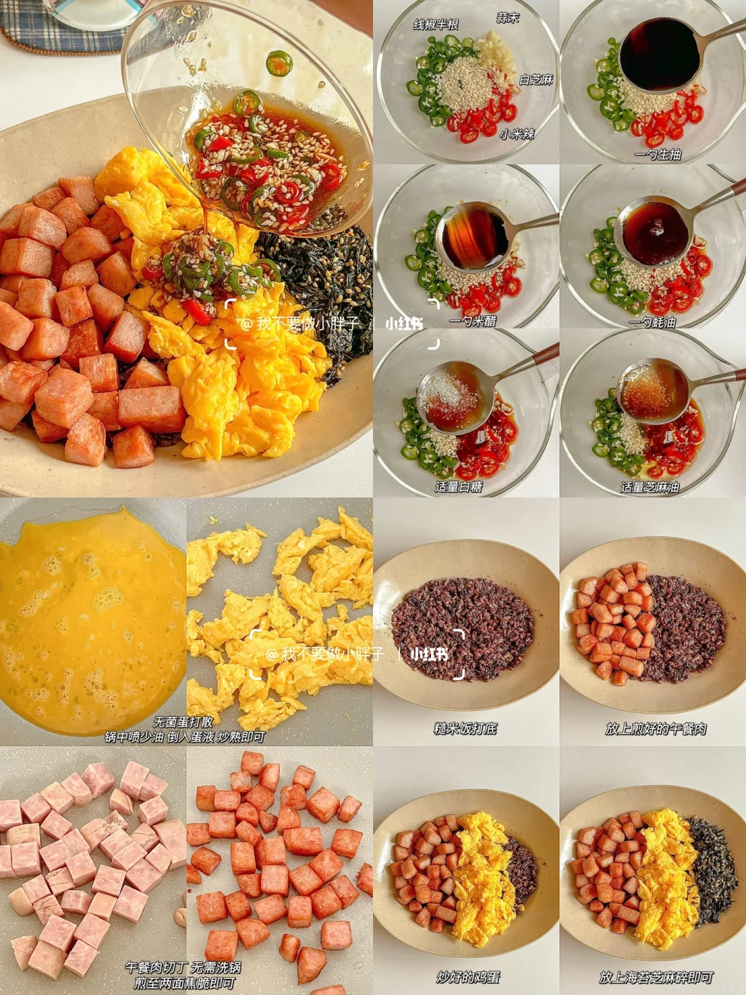 🥢分享六款好吃到舔盘的低卡拌饭,一个人不知道吃什么的时候快来看看吧! 1⃣️午餐肉海苔拌糙米饭 2⃣️凉拌酸辣手撕鸡腿饭 3⃣️低卡黄焖鸡拌饭 4⃣️糖醋荷包蛋拌饭 5⃣️香肠时蔬煎蛋拌饭 6⃣️西葫芦蒜香牛肉拌饭 📝吃不腻的快手拌饭系列,每一道都嘎嘎好吃!拌一拌真的香迷糊啦