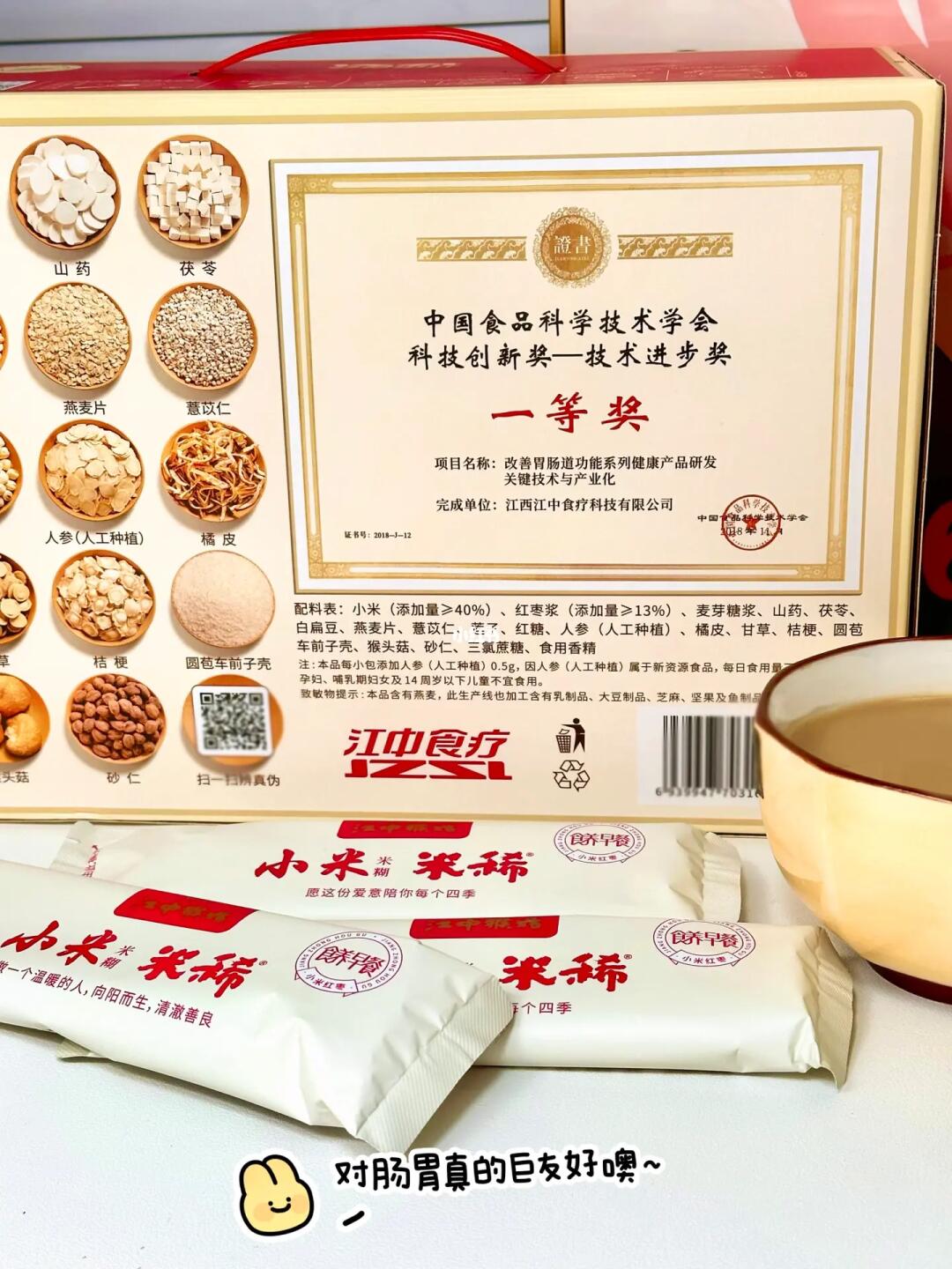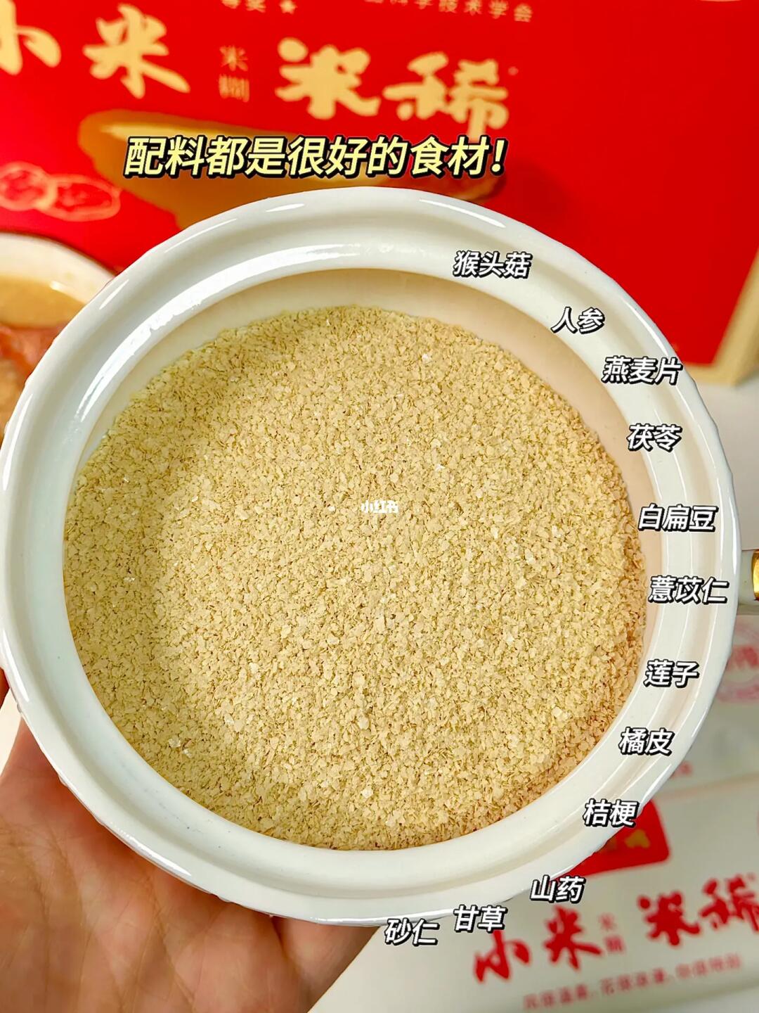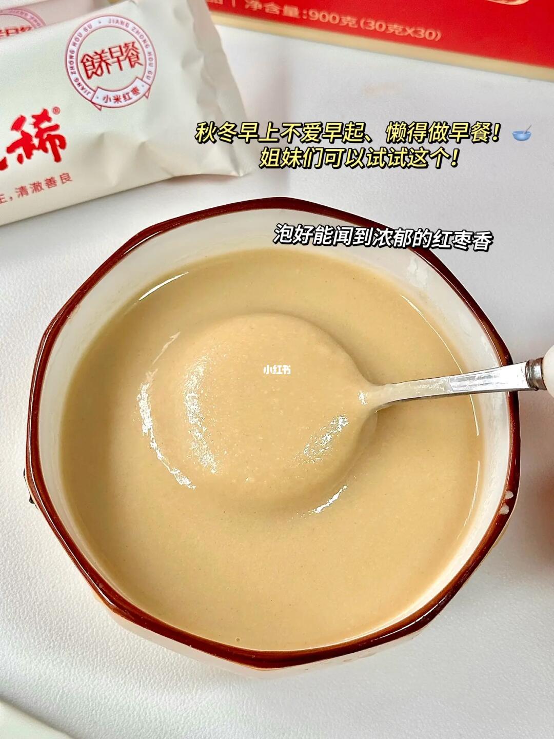 咱可以放心喝!它的配料表是来自宋代养胃古方《参苓白术散》, 有人参、山药等十种药食同源的食材,我买的是小米红枣口味的,使用了小米代替了原配方中的粳米,还添加了新疆一级红枣💯都是对女孩子很友好的食材,特别适合秋冬喝,养胃又养颜! 开水冲泡1分钟就能搞定啦,冲好就闻到浓郁的红枣香😋口感也很温润细腻,香香甜甜的,当早餐真的很nice!一碗喝下去胃里暖暖的舒服多啦~