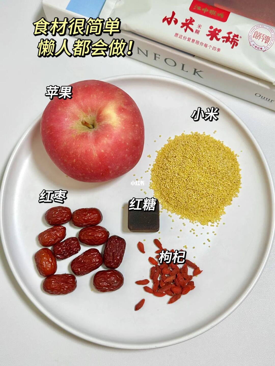 ❤️食材:小米、苹果、红枣、枸杞、红糖