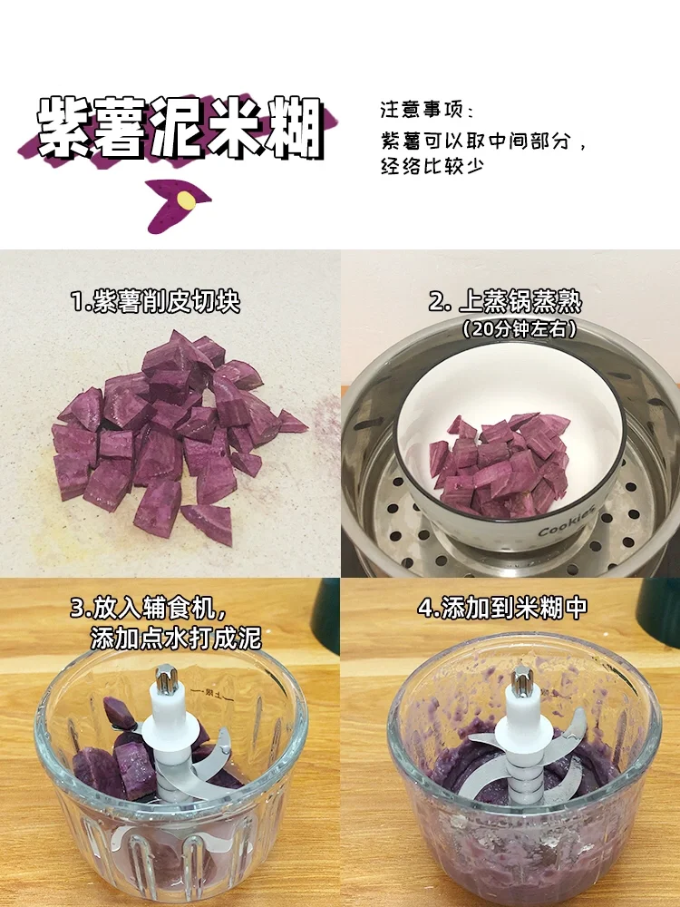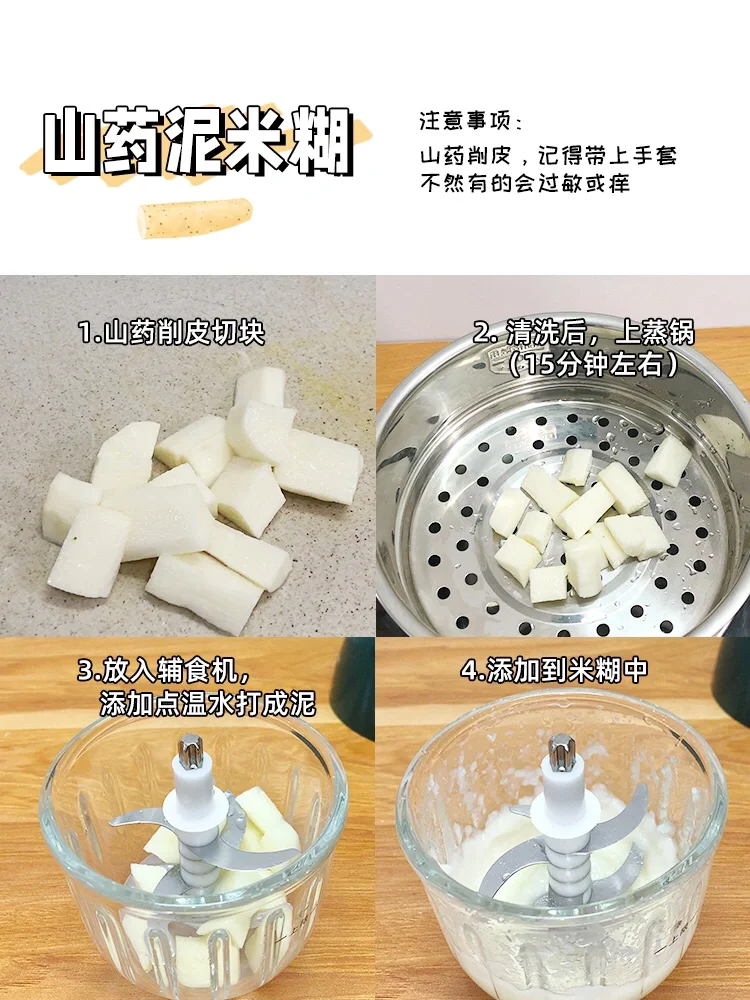 刚开始是吃了一周的纯米糊,然后开始添加根茎类蔬菜,在下旬的时候开始添加少量水果泥。