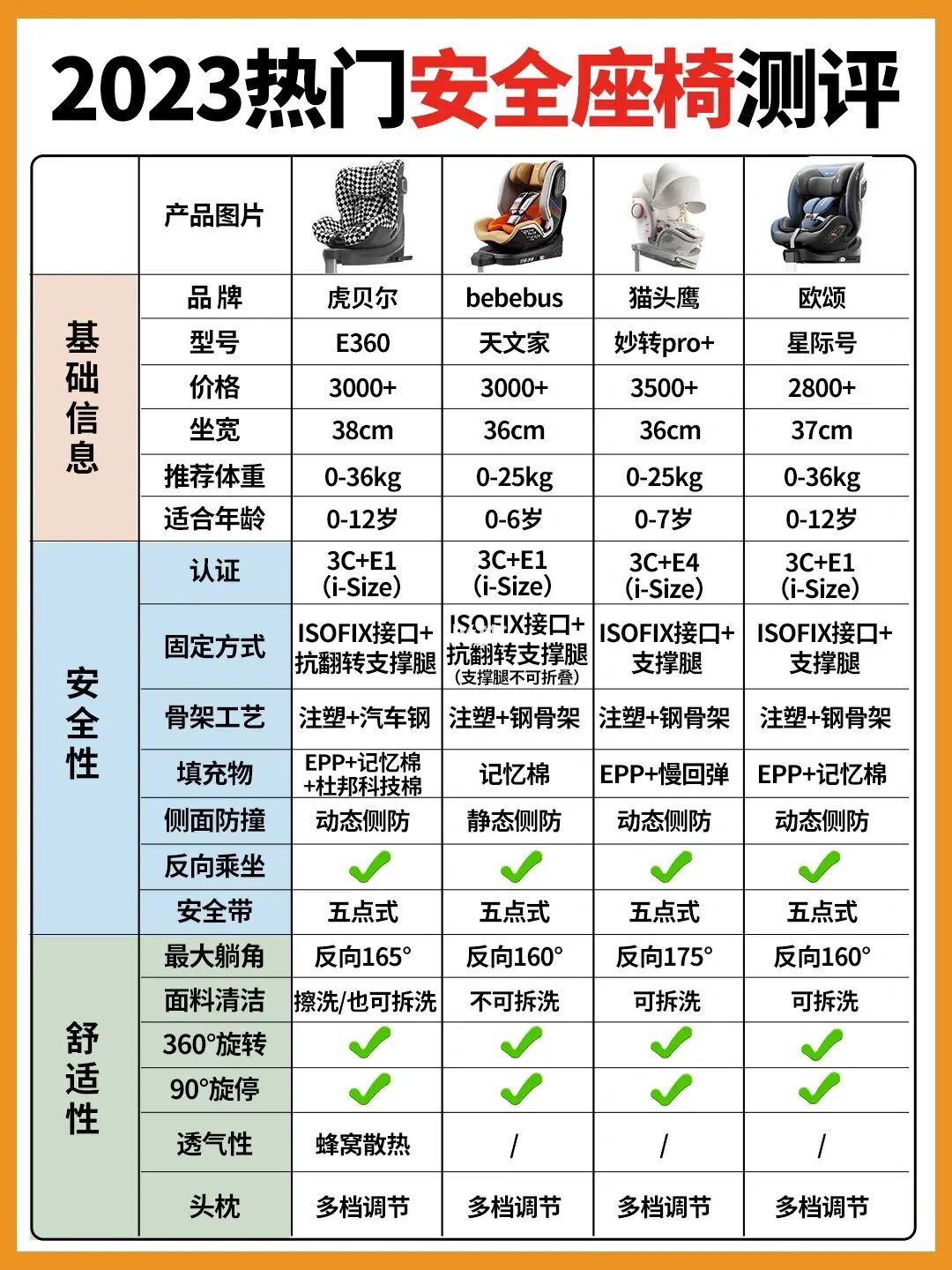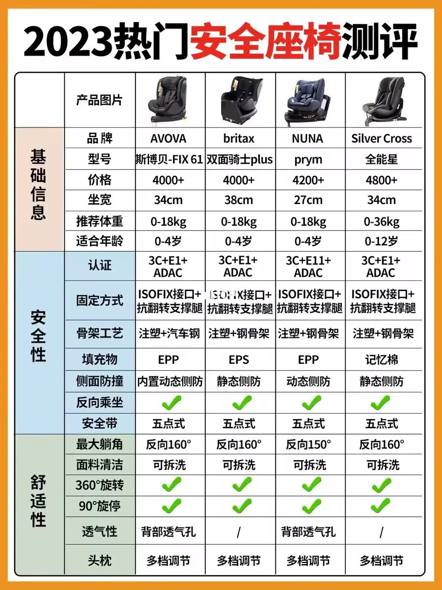 花了一周📝整理了当下热门安全座椅参数分享给各位妈妈们参考~