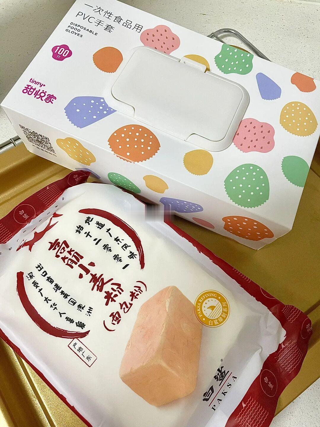 1⃣️除了黄油之外的所有材料混合均匀,揉至粗膜后加入黄油把面团揉至手套膜