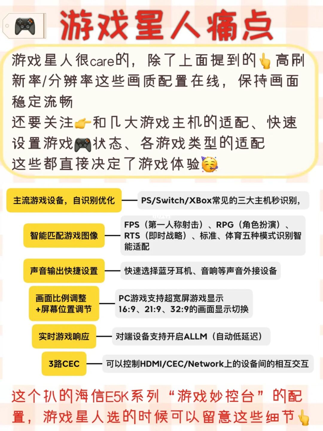 还要关注👉电视和几大游戏主机的适配、快速设置游戏🎮状态、各游戏类型的适配
