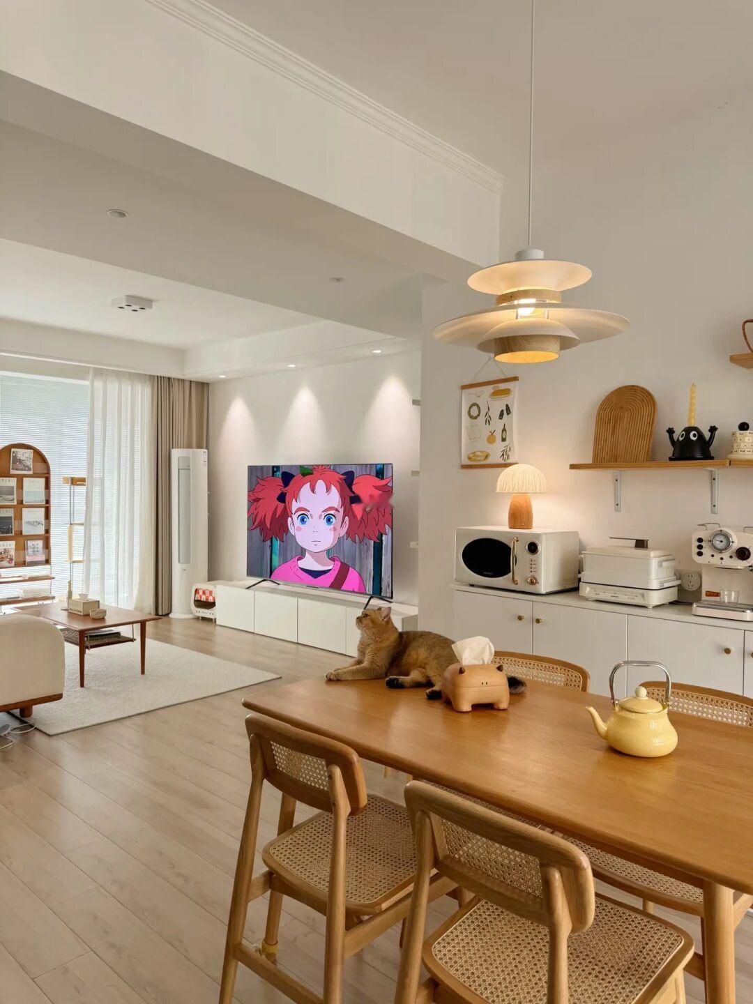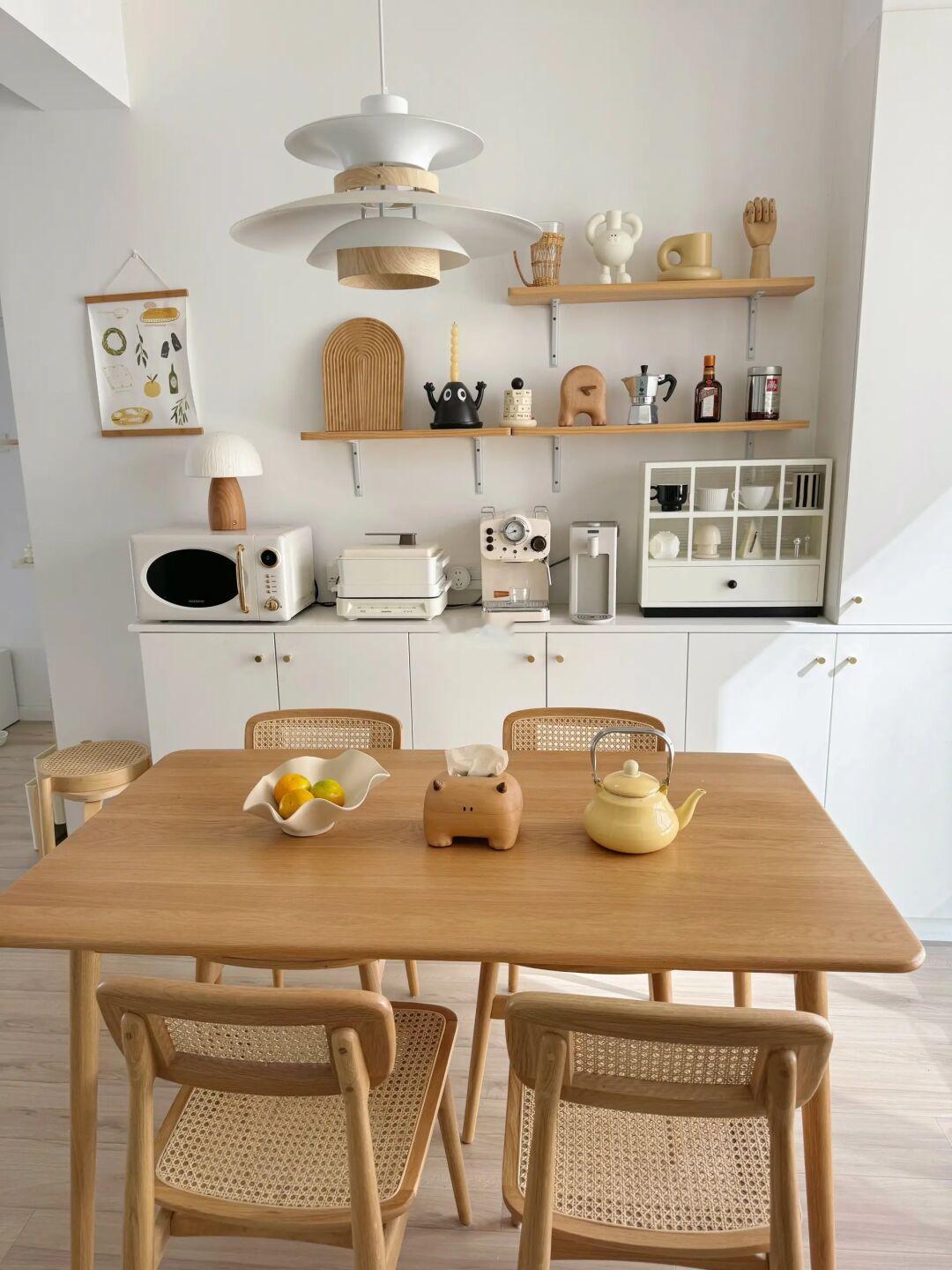 70平独居,一个人住真的超快乐~ 没找装修公司,自己设计的小家简单耐看 没有做复杂背景墙,客餐厅通透显大 硬装简单可以通过软装来改变家居风格~ 客厅用原木风的沙发,餐厅用白橡木餐桌椅 太喜欢实木家具的质感,原木风的小家超温馨 我的卧室很小,所以合理布局很重要 尤其次卧只有8平米,但是却装下了大书桌 夜晚打开曲奇吊灯,宅在书桌办公很明亮~ 小小的房间还有一面墙的衣柜超能装~ 我的卧室超好宅,坐在飘窗垫发发呆都很惬意 天冷了真的只想裹着软乎乎的羽绒被睡觉 白鹅绒蓬松又暖和,还能水洗,不用被套都不怕脏 这样的小房间真的太舒服了,好看又好宅~ 在小城市拥有一个70平温馨小家我超知足! -