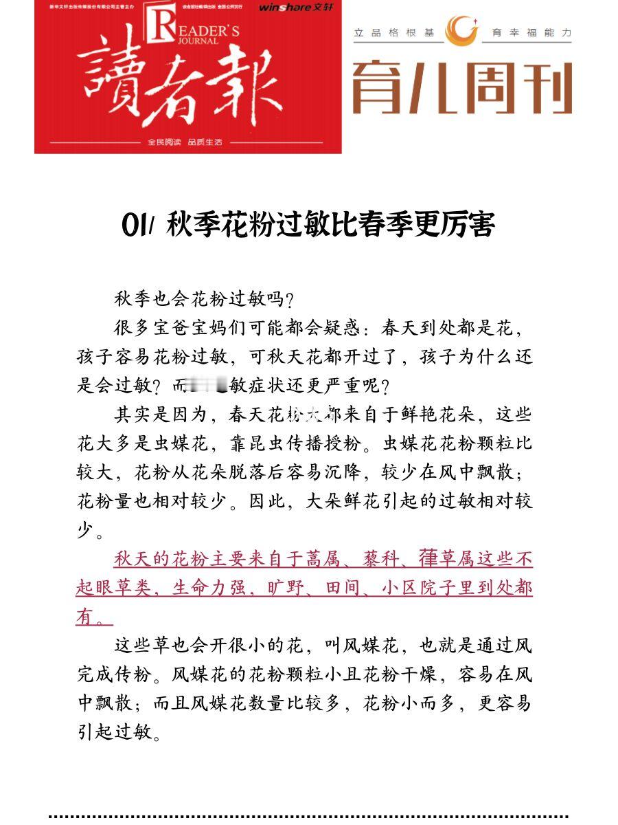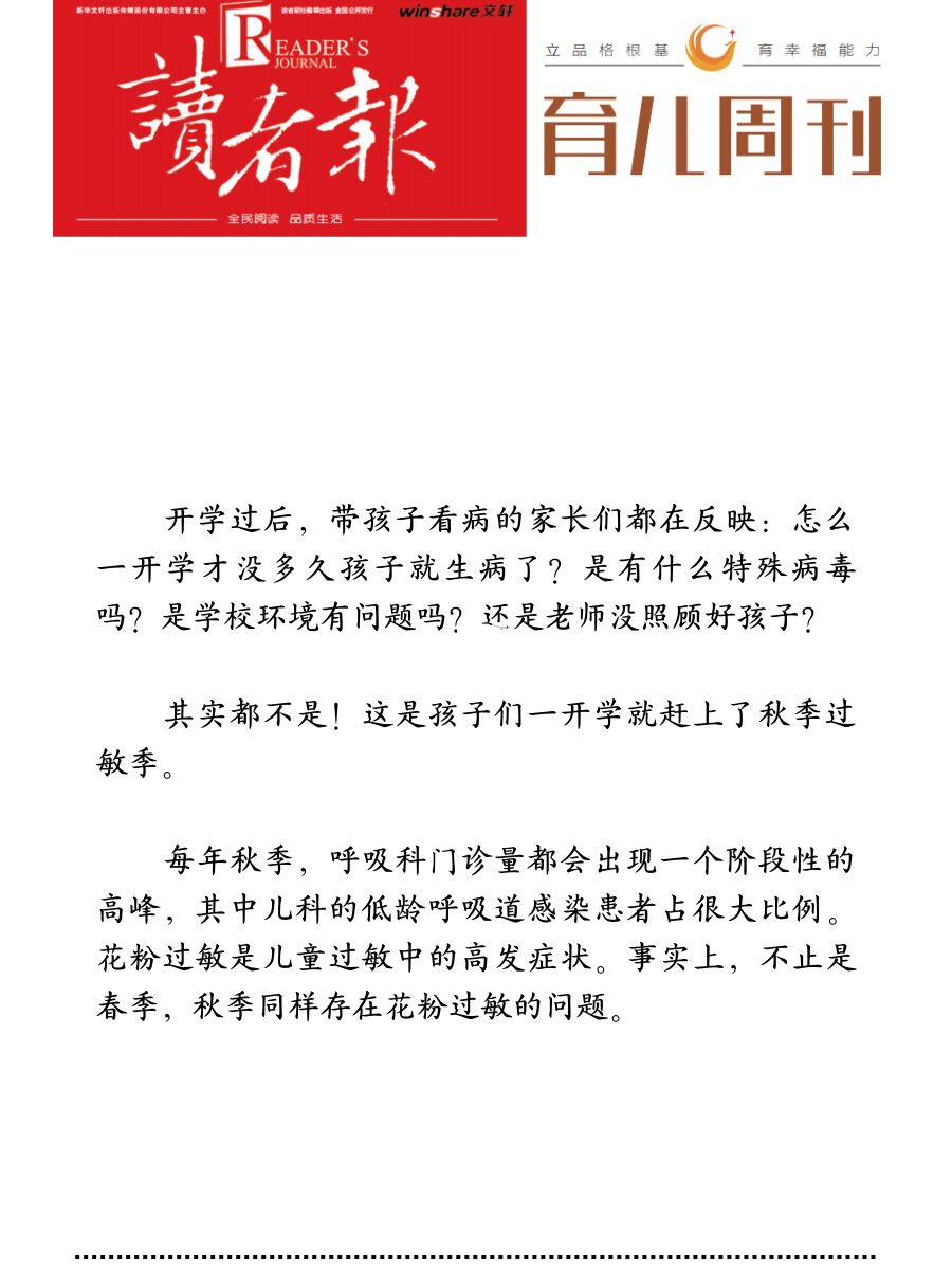 每年秋季,呼吸科门诊量都会出现一个阶段性的高峰,其中儿科的低龄呼吸道感染患者占很大比例。花粉过敏是儿童过敏中的高发症状。事实上,不止是春季,秋季同样存在花粉过敏的问题。