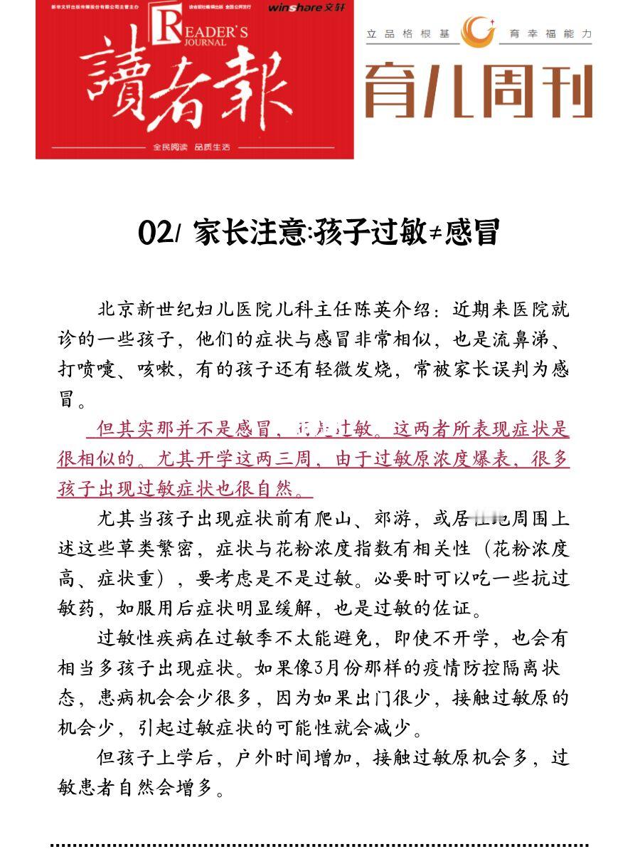 孩子过敏≠感冒,这几招帮孩子度过过敏季