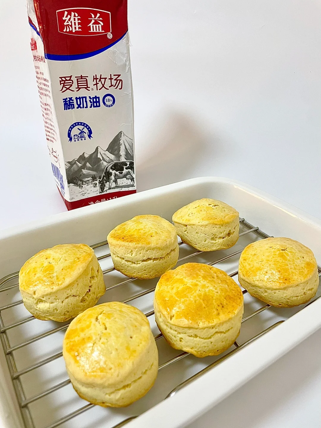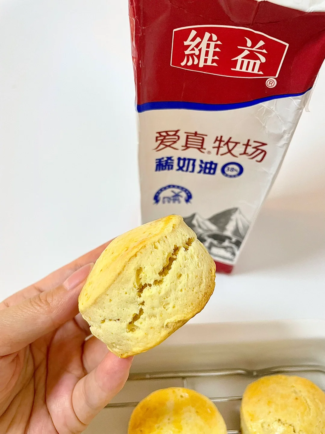 🧡做过了那么多版本的司康,最爱的还是这个配方!配方中加入了乳脂含量38%的维益爱真牧场稀奶油,增加了司康的奶香味,口感更浓郁!