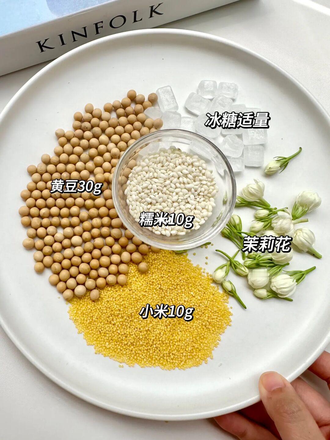 谁懂啊! ! 比小摊上卖的还好喝! ! 豆浆和茉莉花竟然这么搭我真万万没想到 喝完嘴里打嗝都是一股茉莉花香~~~ 你们快去做! ! 做法放在图上了