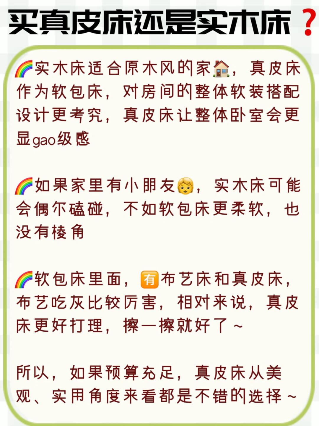 🌈实木床适合原木风的家🏠,真皮床作为软包床,对房间的整体软装搭配设计更考究,真皮床让整体卧室会更显gao级感