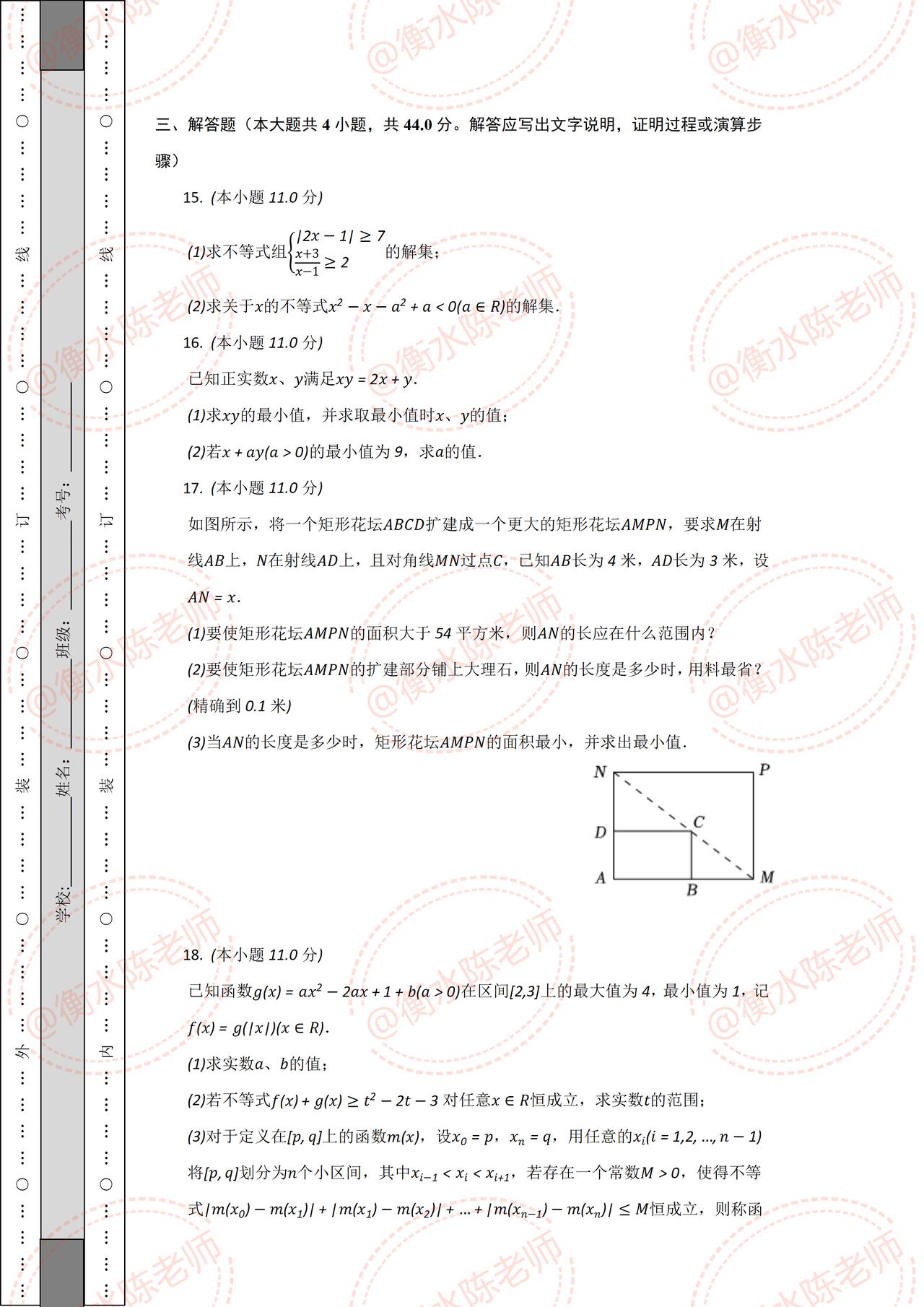 高中数学必修第一册,期中考试重点考题,是根据不同的省份、高考大纲编写的,成绩比较弱的,临考之前,记得做一下自己城市对应的期中试卷,想要获取的考生,和我沟通一下哦。