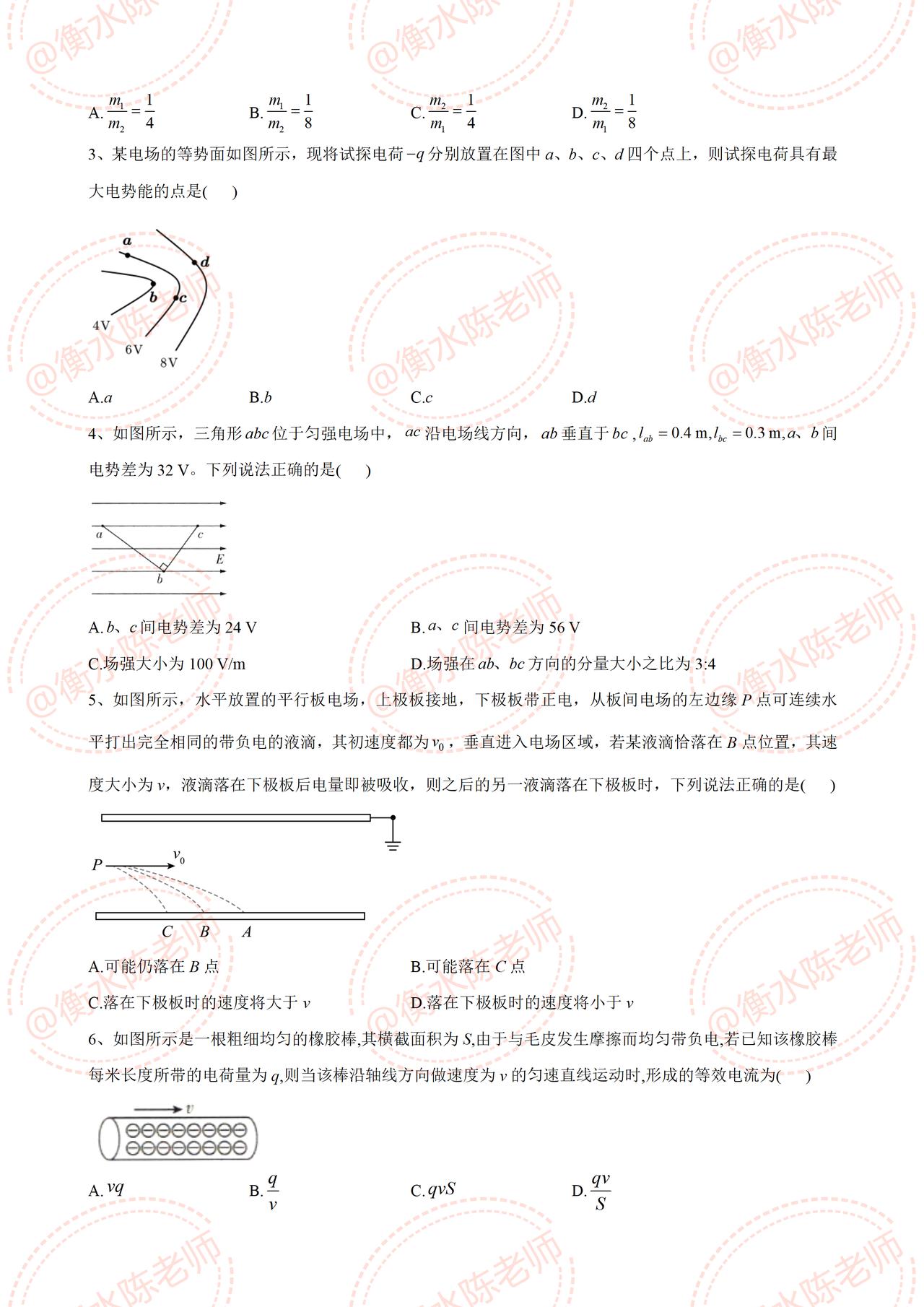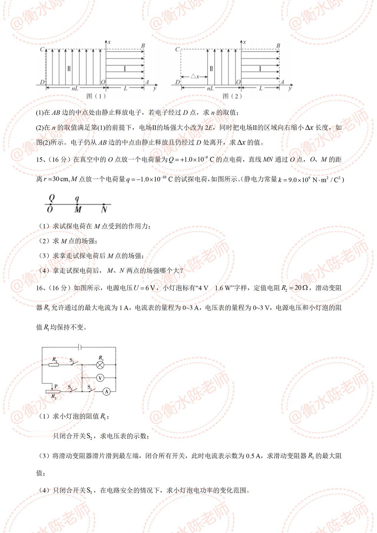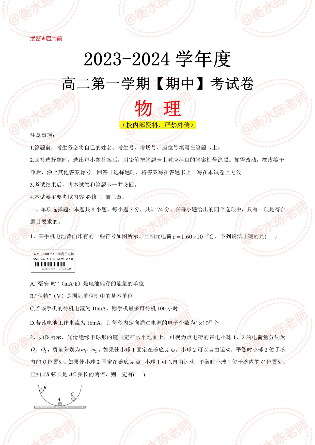 高二上学期物理,期中试卷中必出、常考热点考题,第一时间发给大家,期中考试卷,根据不同城市、学校考试重点编写的,月考成绩不理想的,提前和我沟通一下哦,考试让你多考分数,少走弯路哦。