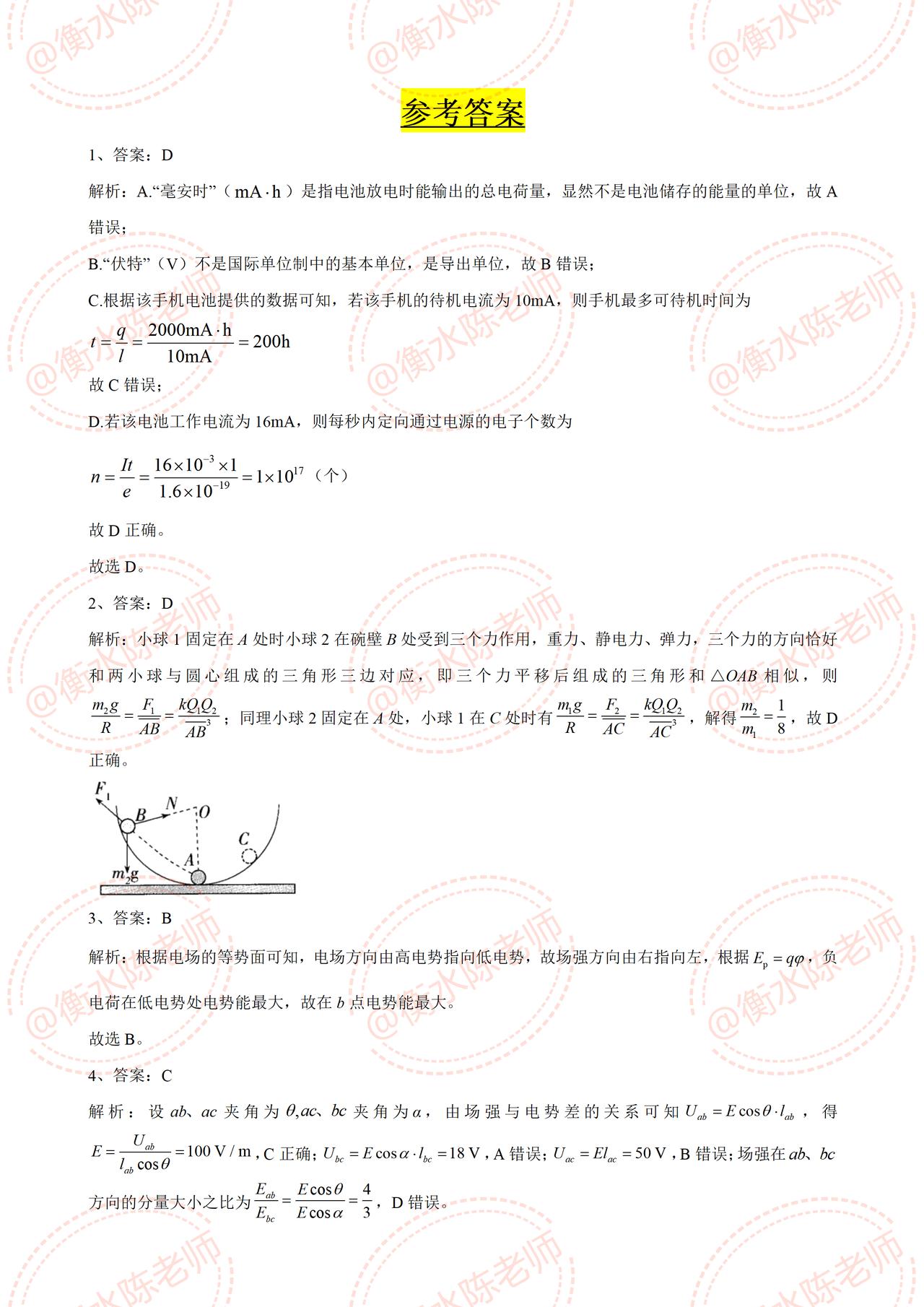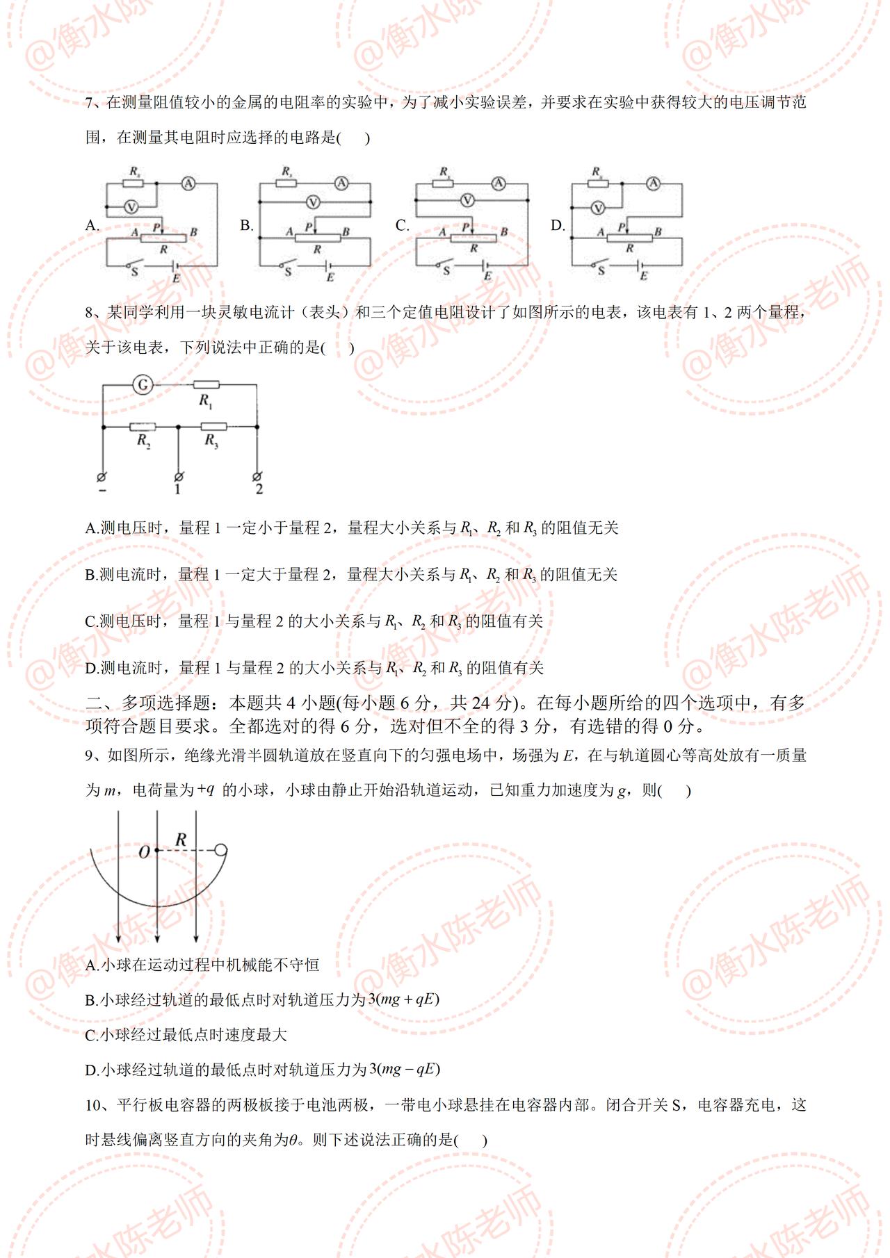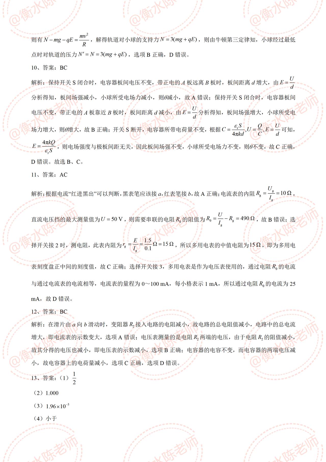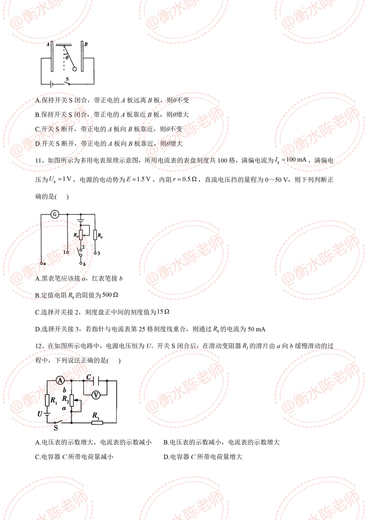 高二上学期物理,期中试卷中必出、常考热点考题,第一时间发给大家,期中考试卷,根据不同城市、学校考试重点编写的,月考成绩不理想的,提前和我沟通一下哦,考试让你多考分数,少走弯路哦。