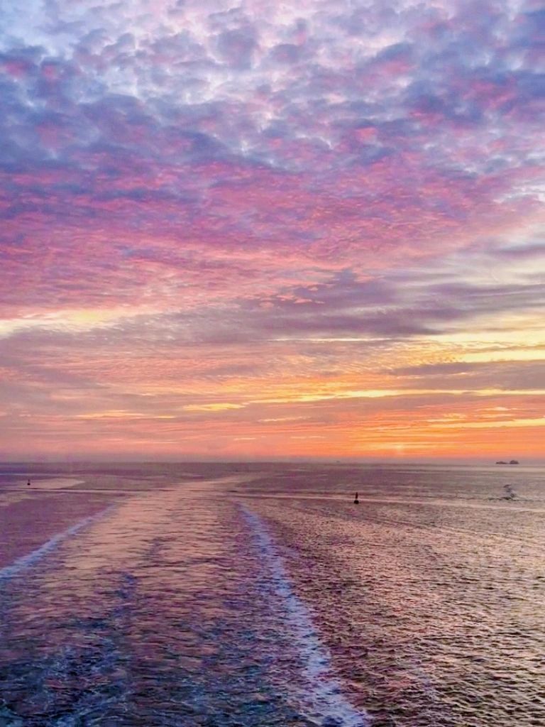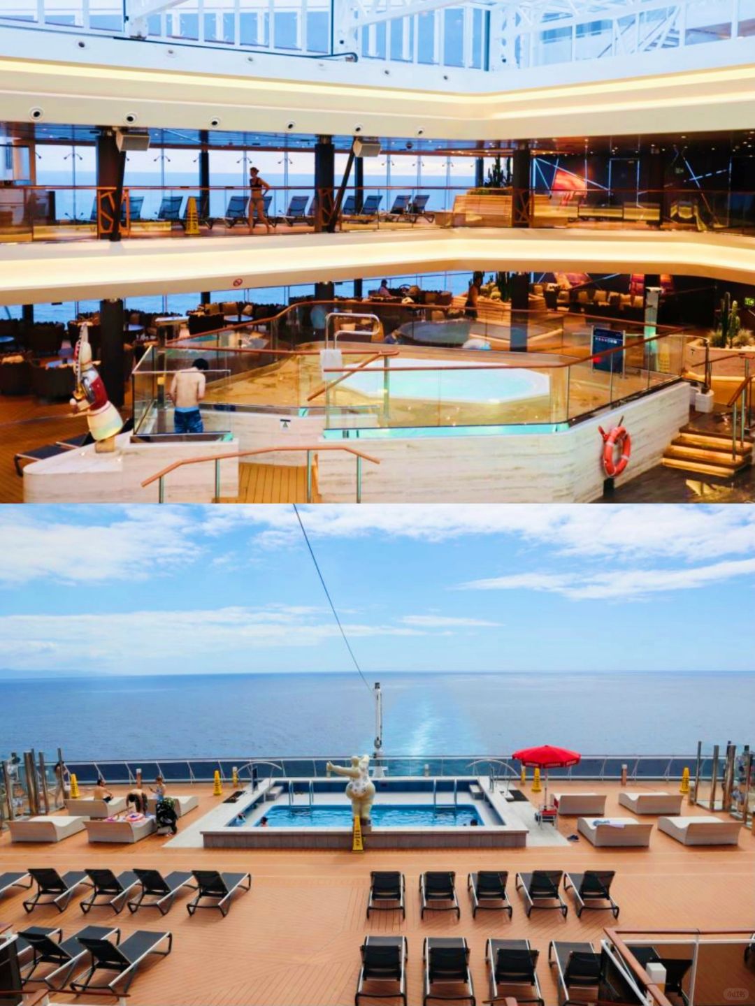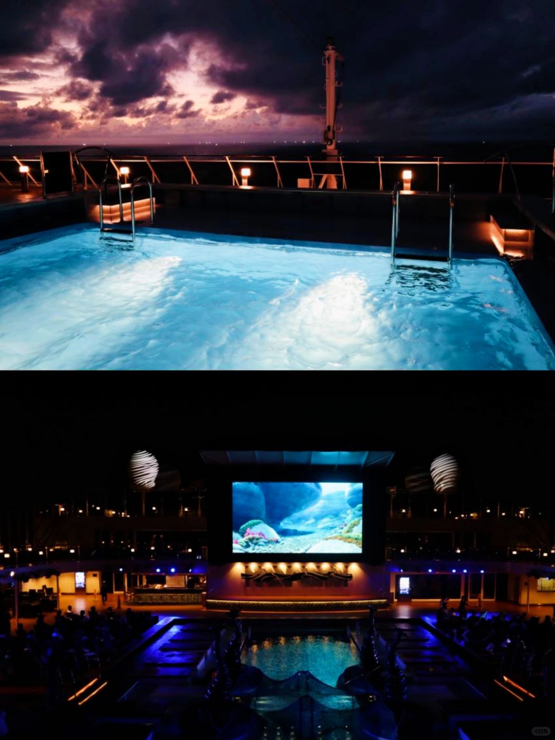 ✓ 日落时分在船尾泳池看一场尾流配落日