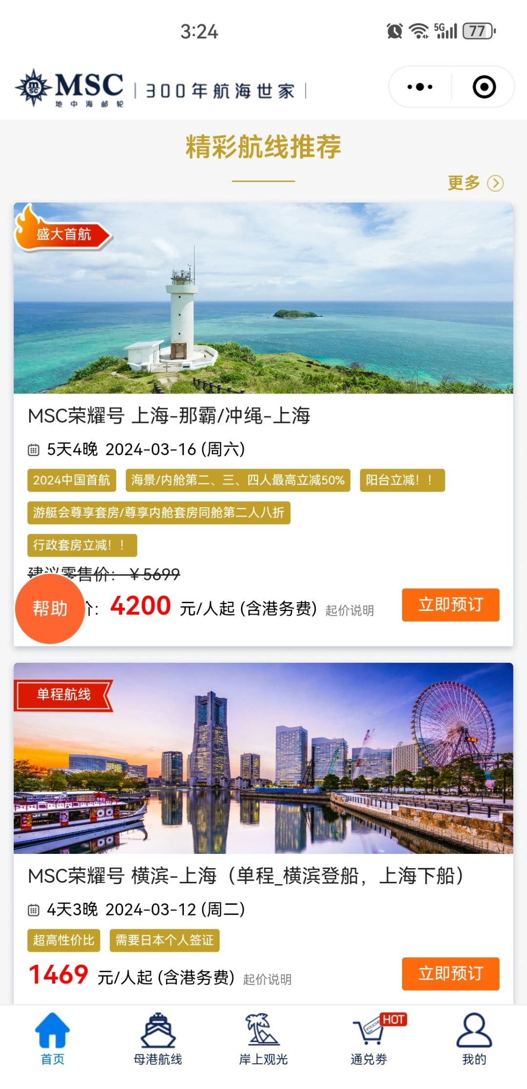 飞猪上MSC旗舰店,现在可购买1价通兑券,低价预定24年热门季,超多热门航线可兑;小🍊序上现在还有1200r的新人礼,再加上双十一的各种优惠抵扣券,叠加起来更划算呢~