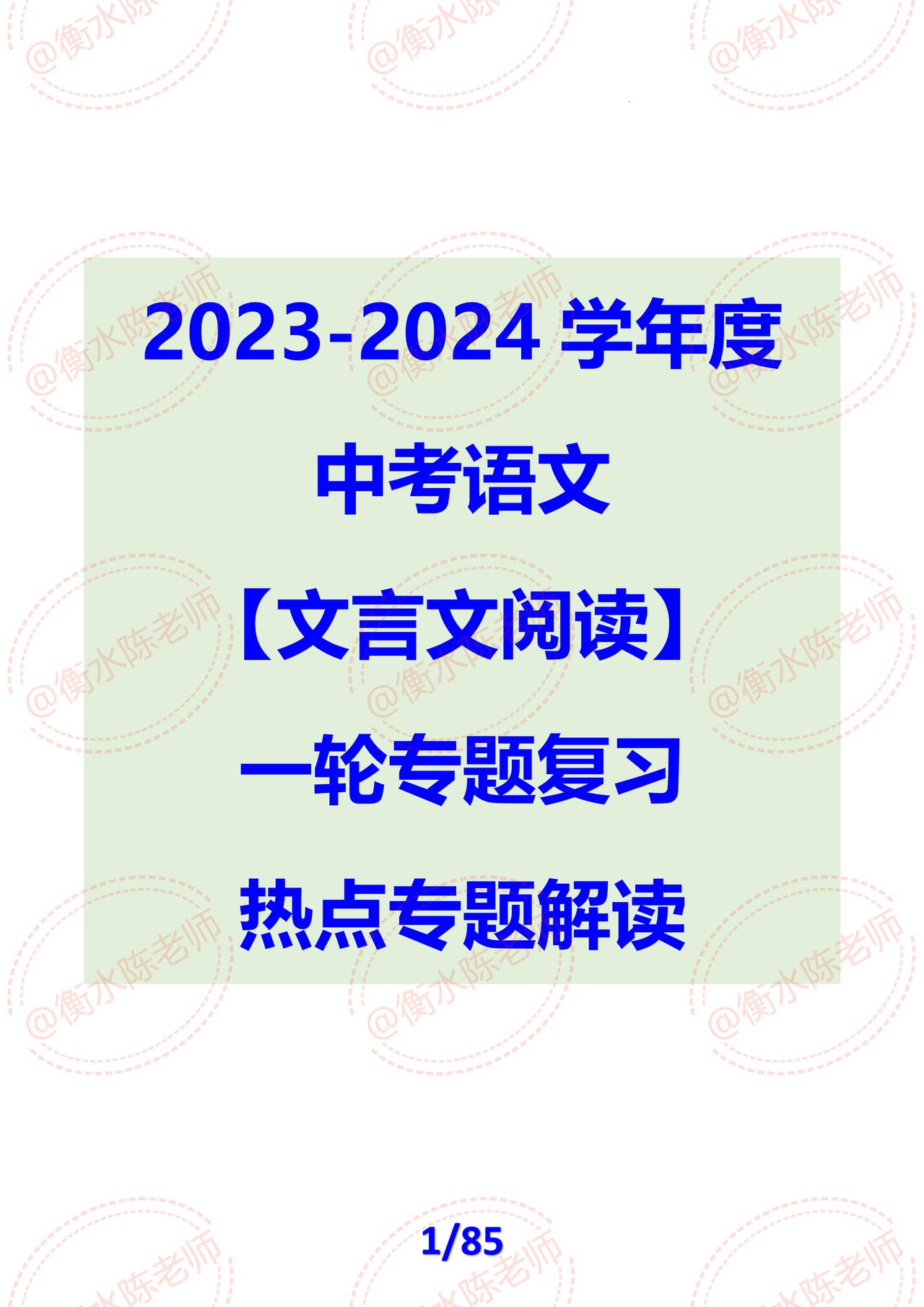 2023-2024中考语文一轮复习【文言文阅读】常考热点考题,根据不同的城市、学校考试重点编写的,想要获得自己城市一轮专题复习的考生,记得和我沟通联系哦,考试让你少走弯路,多考分数哦。