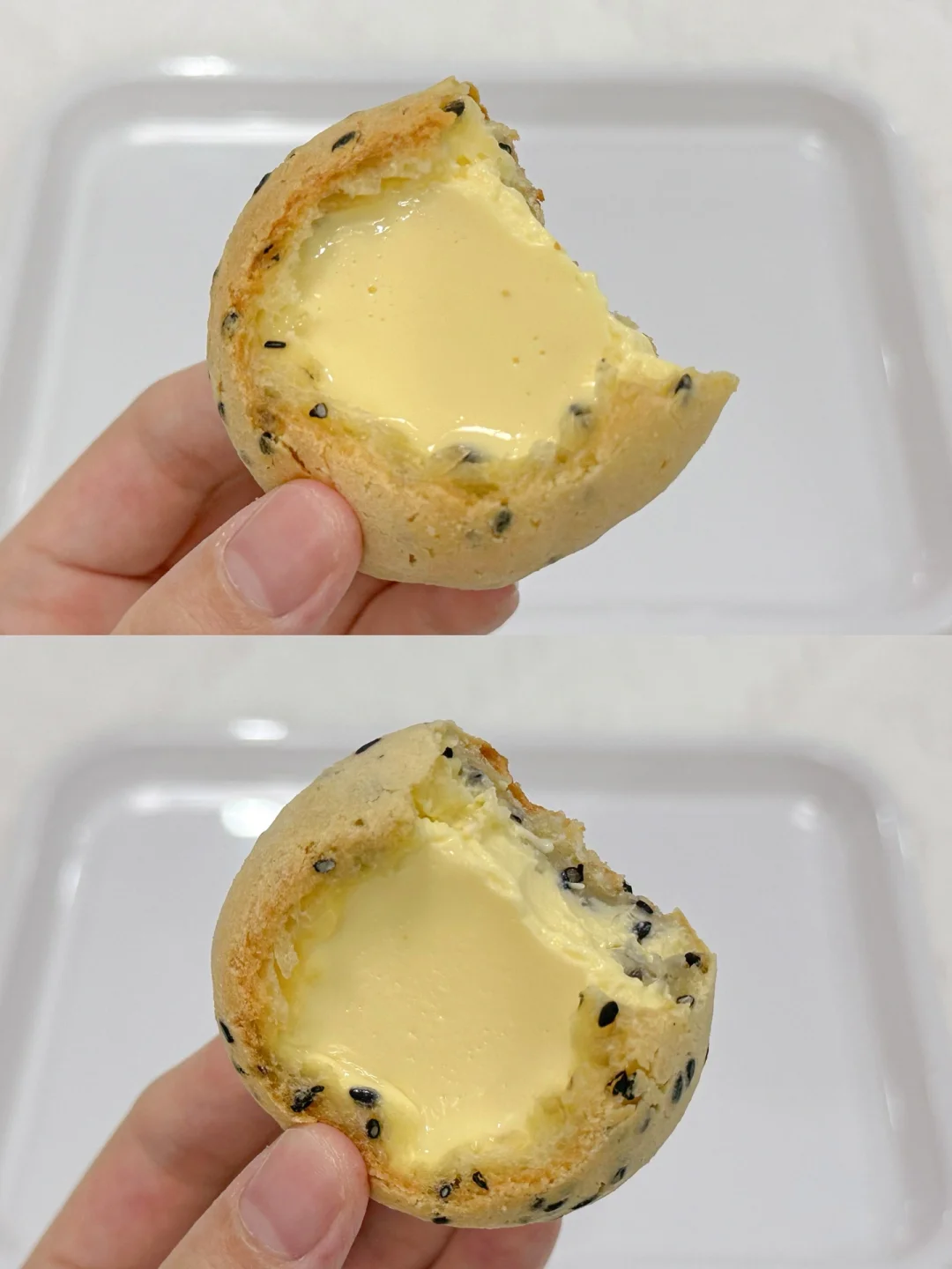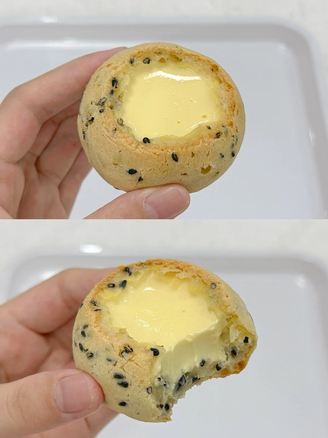 3⃣️将烤好放凉的麻薯切掉顶部,倒入布丁液,放入冰箱冷藏凝固即可。