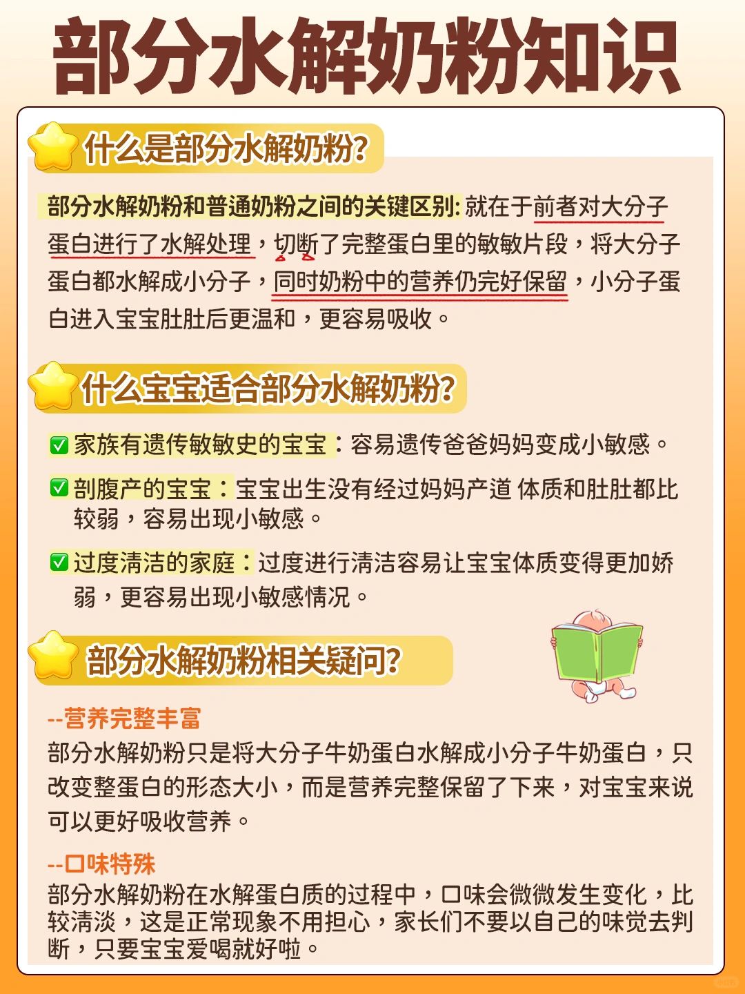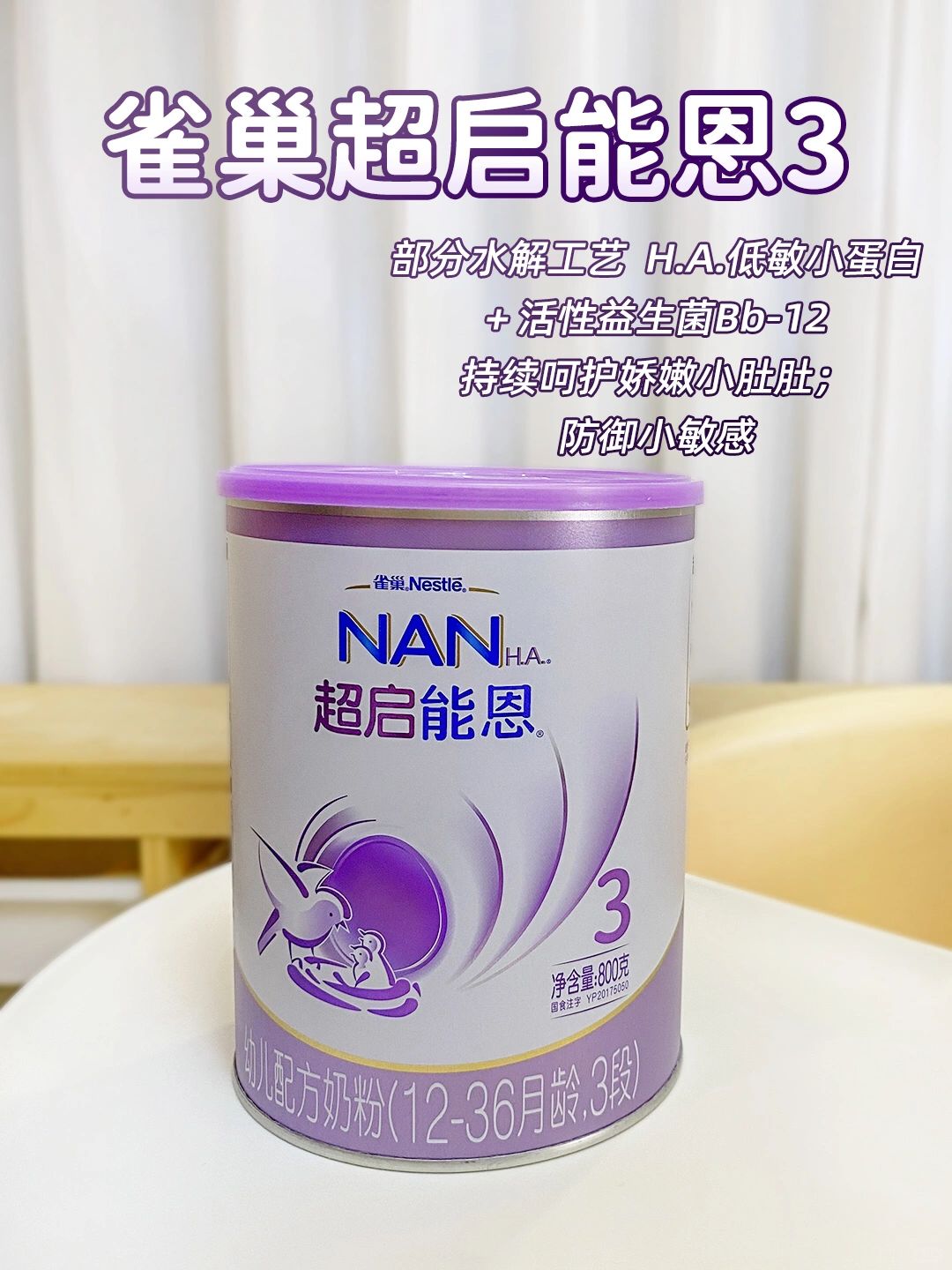 ✍️我经过对比选择了雀巢超启能恩3这款100%部分水解奶粉。雀巢已经有30年的部分水解配方历史,这种有经验、技术成熟、口碑好的品牌,在品质上也更让人放心!!雀巢的部分水解尖峰技术,是定向切断了大分子蛋白里的敏敏片段,将大分子蛋白的致敏性大大降低!而且有临床喂养研究证明,长期喝是可以很显著帮助宝宝防御小敏感嗷~我当时持续给宝宝喝了一段时间,很少再看到宝宝起红点点和嗯嗯困难的情况了!不愧是雀巢!