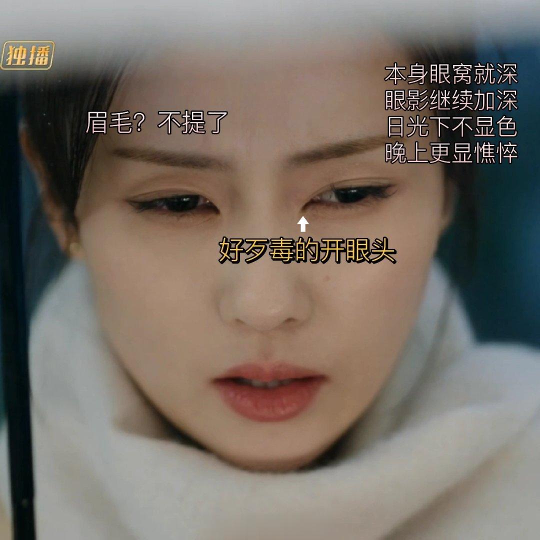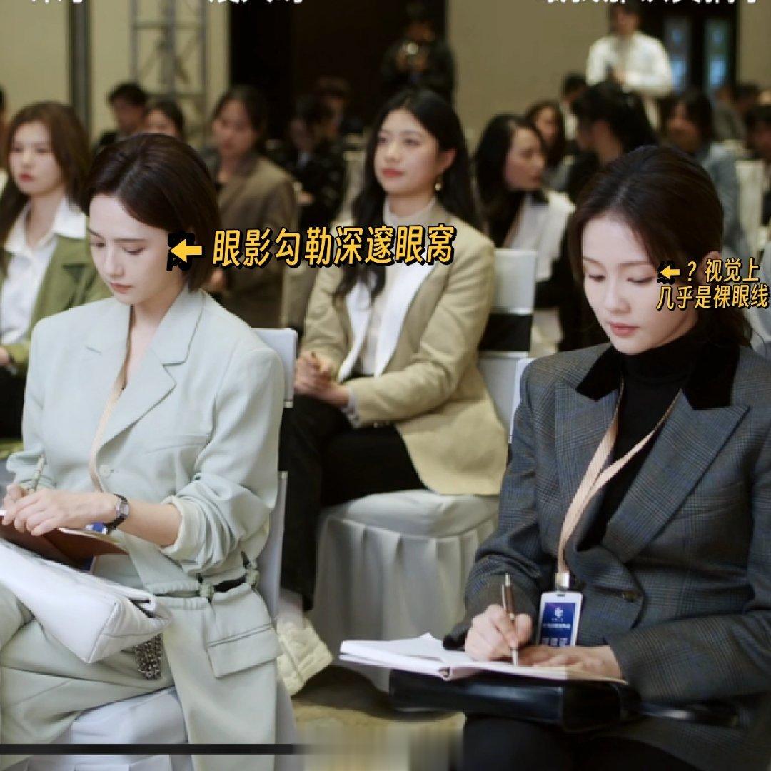 艾闻团队的操作我看不懂,女配清一色雾眉+全眼影勾勒眼部轮廓,配色也很显气色。反而女主的土黄色系伪素颜妆容让人困惑…而且白鹿的妆容明显非常不适合她本人的面部留白比较多的情况,这完全是妆造团队的失职。