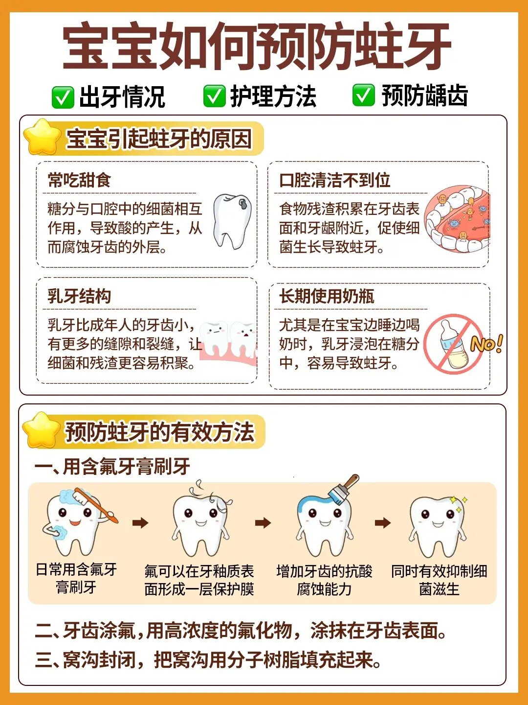 ‼️正确刷牙、牙齿涂氟和窝沟封闭对防护龋齿都有一定的好处,👉但注意口腔清洁、正确刷牙是婴幼儿预防龋齿的第一步。