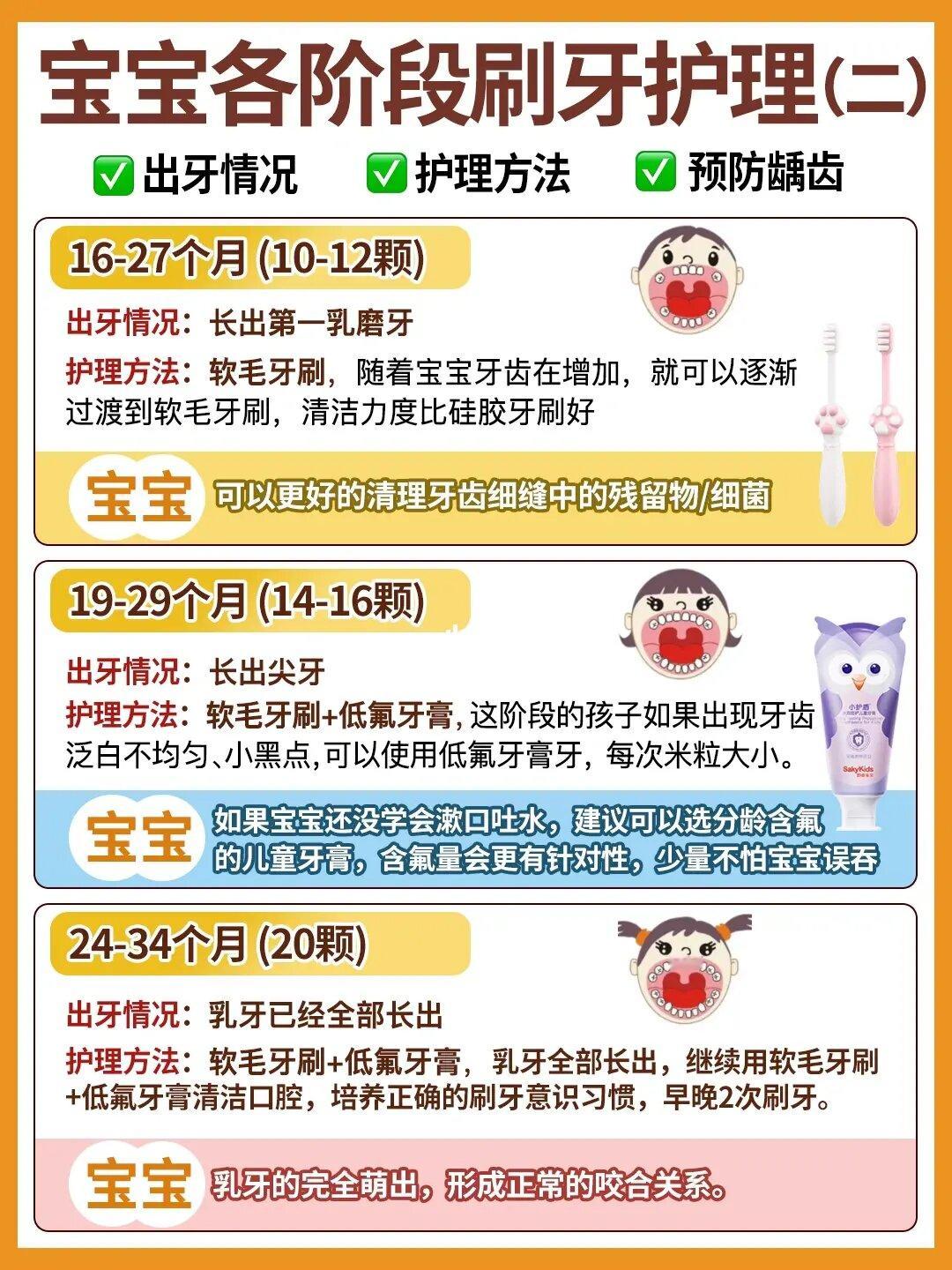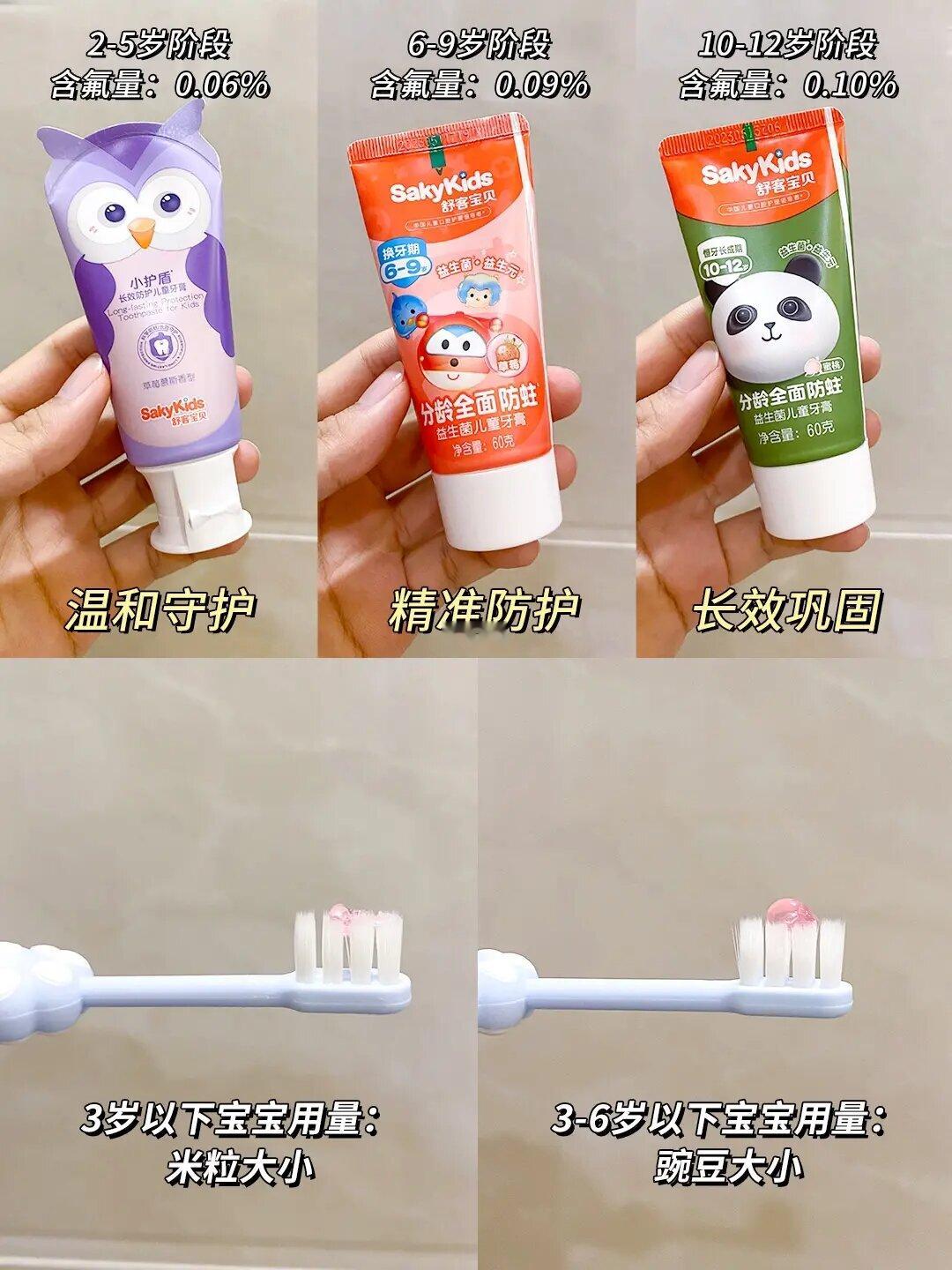 这个阶段的孩子如果出现🦷牙齿泛白不均匀、牙齿小黑点,可以使用低氟牙膏预防蛀牙,注意使用米粒大小即可。