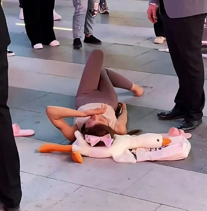保安看惹怒她了,便不敢引火烧身,随后就不再管她,任由她睡在地上了。