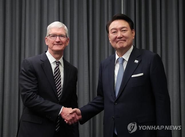 #韩国社会#【苹果CEO库克与韩国总统尹锡悦会面】 韩国总统尹锡悦11月15日