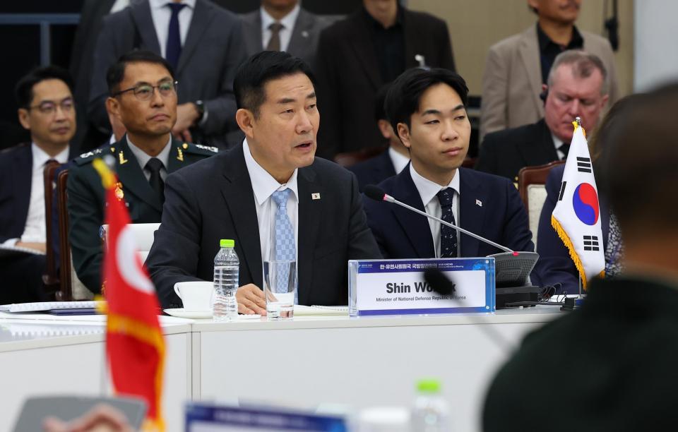 #韩国社会#【韩国国防部长称中俄若帮助朝鲜,将遭无情惩罚】 韩国国防部长官申元植11月14日表示,“如果朝鲜战争时帮助过朝鲜的国家再次出面为朝鲜提供帮助,那么这些国家也将受到国际社会的严厉惩罚。” 申元植当天在首尔龙山国防部大楼举行的韩-联合国成员国国防部长会议致欢迎词时表示,“该会议将成为拒绝以规则为基础的国际秩序、试图依靠力量改变现状的国家或集团的强烈警告。” 申元植部长表示,“我作为韩国国防部长官,在此向朝鲜发出严重警告。与朝鲜战争时不同,现在朝鲜已经成为了联合国成员国。 如果朝鲜再次进行对韩国进行非法南侵,这是联合国成员国攻击联合国军司令部的自我矛盾行为。” 他还补充说,“如果那样的话,以联合国军司令部为中心的国际社会必然对朝鲜和帮助朝鲜的国家采取强有力的惩戒措施。" 申元植部长就此次会议表示,“此次峰会将展示国际社会对抗朝鲜威胁的团结力量,进一步加强成员国之间的联合。同时也将成为再次确认国际社会对朝鲜半岛和平的强烈守护意志的契机。”