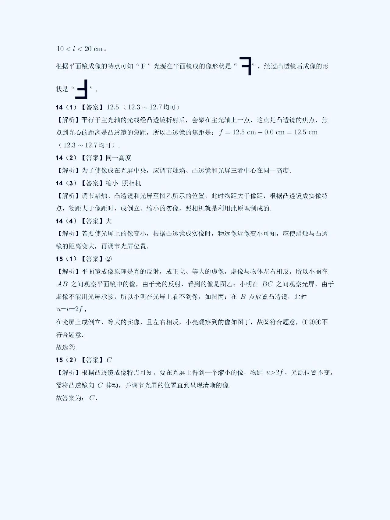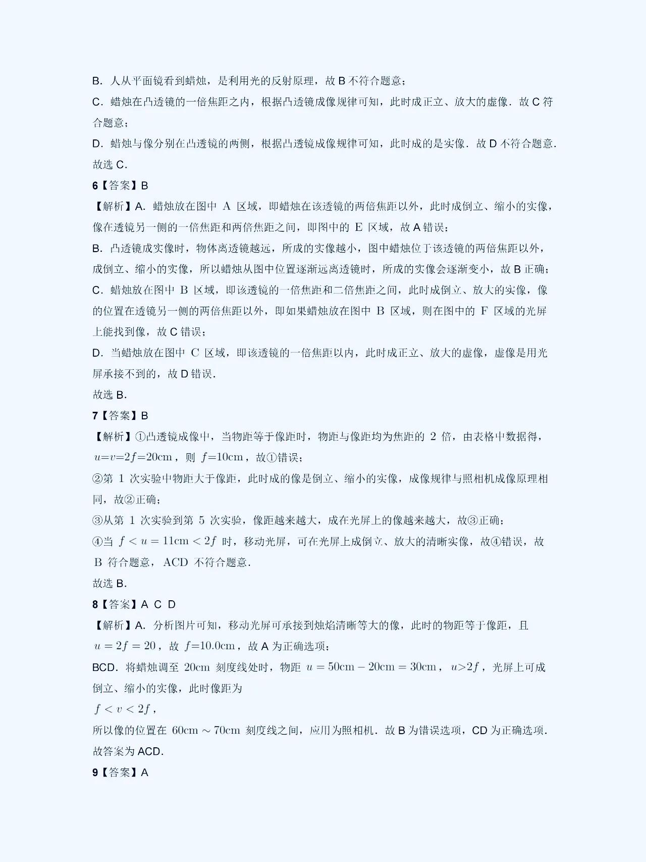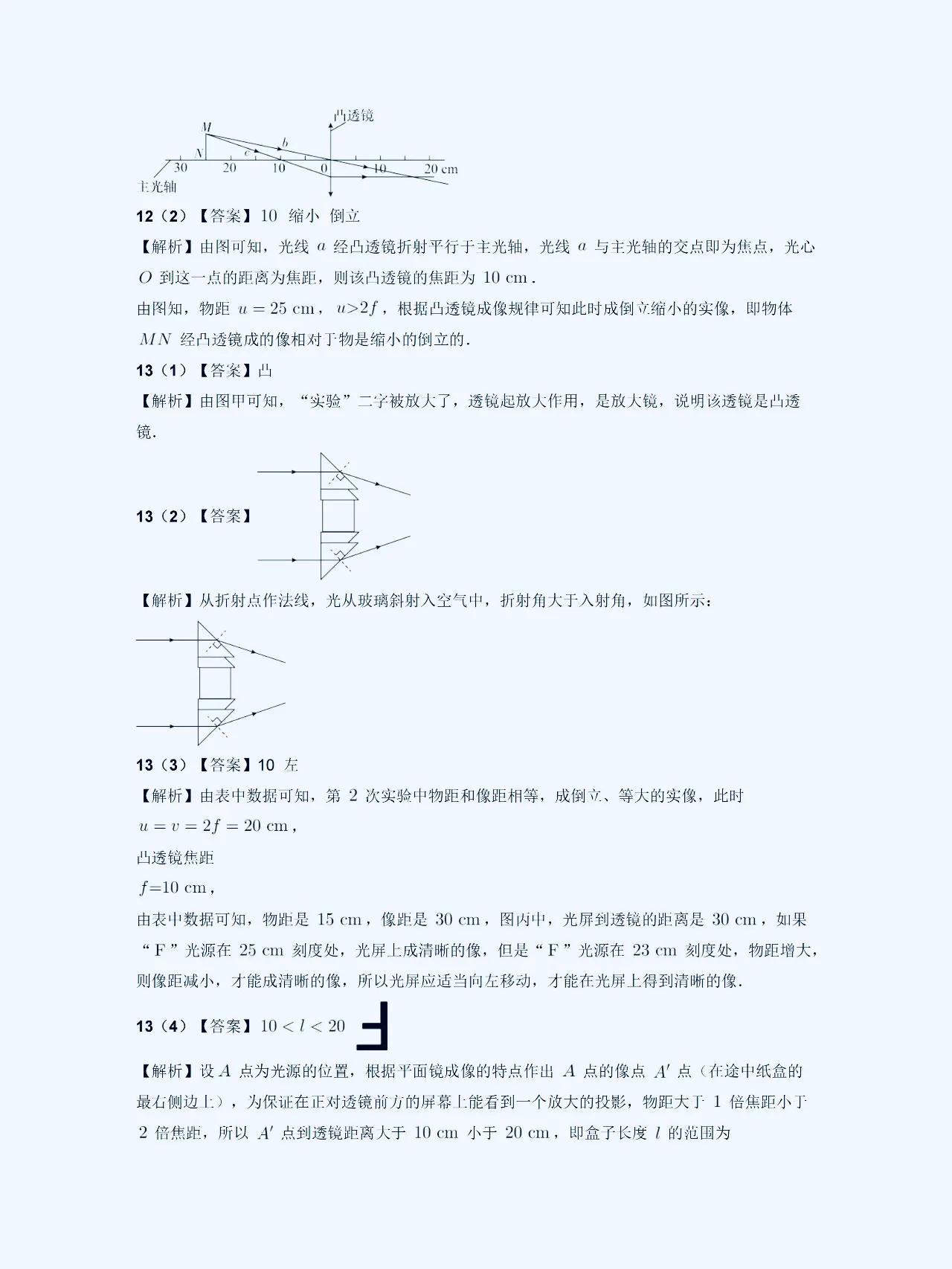 八上物理【凸透镜成像】解题规律 在初中物理学习中,凸透镜和凹透镜是经常出错,易混淆,马虎的一个题型。 它们的成像性质和规律有着一定的特点,这方面比较弱的,这套解题方面的思路,技巧,以及常考的热点,课内外重难点考题,发给大家。 1、凸透镜成像性质: 凸透镜成像时,平行光线经过透镜后会会聚到焦点。而且,在凸透镜的焦点之后放置物体,光线会经过透镜后呈现向后延伸的方向,从而形成虚像。这是凸透镜成像的基本性质。 2、成像规律总结: 根据物距、像距以及透镜的焦距的数值关系,我们可以总结出成像规律:当物距大于焦距时,透镜成像会在焦点处形成实像;当物距小于焦距时,透镜成像会在焦点处形成虚像。 #初中物理#初二物理#凸透镜成像规律#八上物理 #初二上册物理期末复习