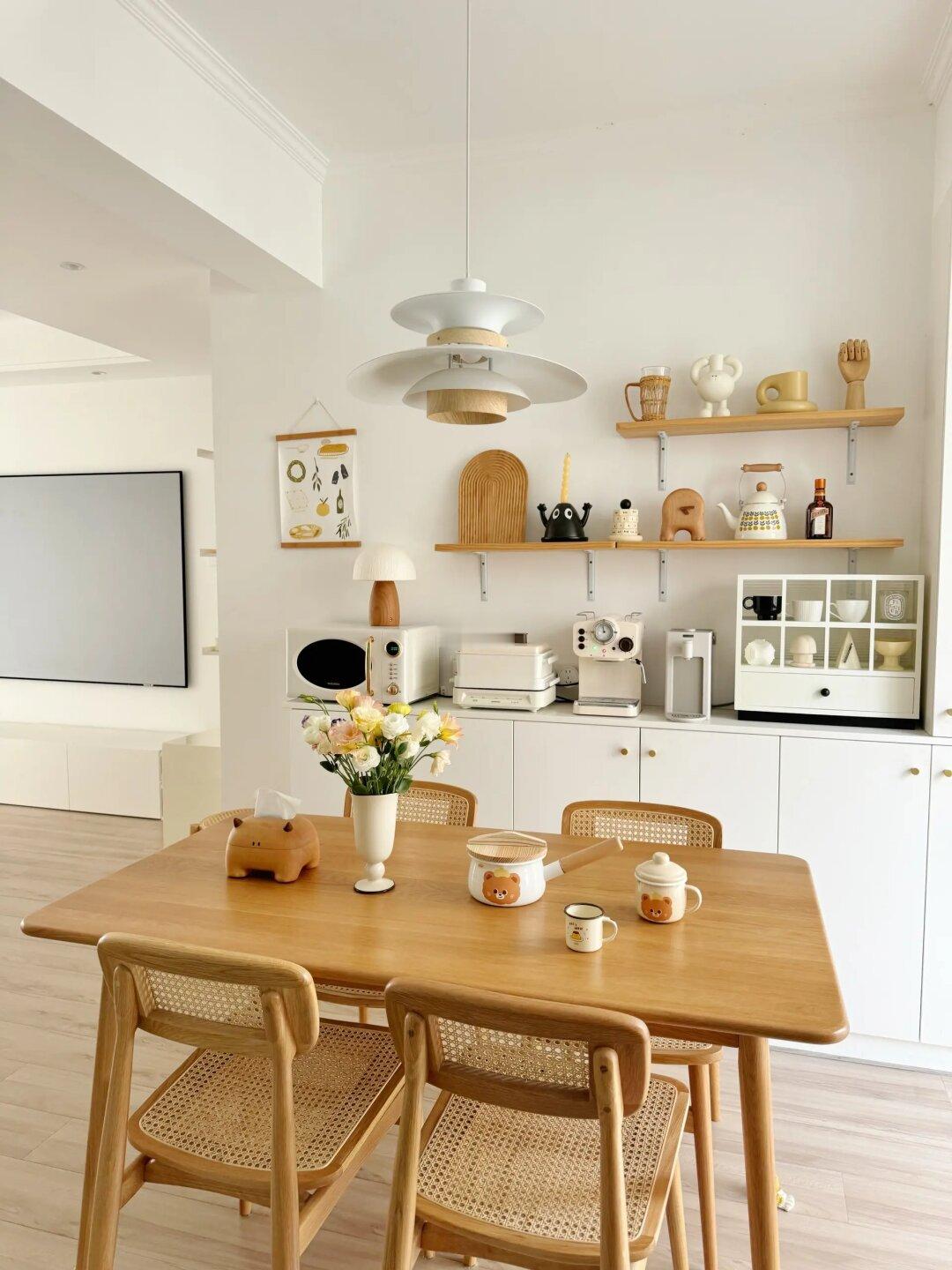 好看的家太多了,但最喜欢的还是自己的小家😂 虽然硬装只花了8w,但是简单温馨住起来挺舒服~ 硬装从简真的省钱又耐看~简单刷个大白,客厅双眼皮吊顶,用超薄斗胆灯,无主灯不压层高,只开它也够亮~ 钟情于原木风,实木家具让家更有质感,餐厅用白橡木餐桌椅,客厅用原木风沙发,搭配纯色羊毛地毯简约耐看~ 我的家虽然很普通,并不豪华,但自己用心设计的小房子当然最喜欢~ -