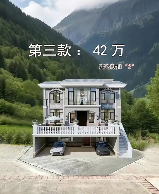 建成这些造型的房子除了第一款的其他都差不多标价,外形装修一平方120左右,内有个90-120就可以非常漂亮,第一款如果用木头建估计得几百万,水泥建也要不少钱,看车子这房子单层面积估计得有五六百平方了