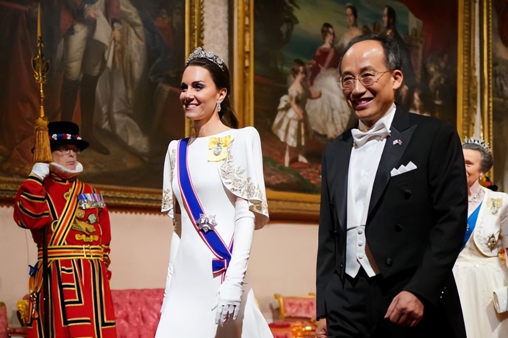 威尔士王妃又把人美到了,一袭白色礼服裙解锁新皇冠,出席国宴仙气飘飘,太像童话故事中的小仙女,雍容华贵更不用说,韩国夫人根本比不上。