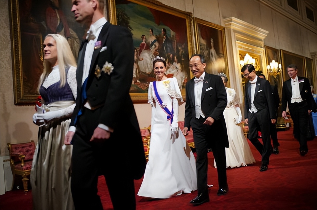 威尔士王妃又把人美到了,一袭白色礼服裙解锁新皇冠,出席国宴仙气飘飘,太像童话故事