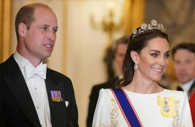 值得一提的是威廉王子看到自己的妻子穿这么漂亮,眼神一直不离开凯特王妃,两人也太恩爱了。