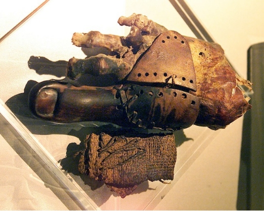 公元前950年,埃及一贵族小姐木乃伊上的义肢大拇指,由木头雕刻而成。发现于开罗。
