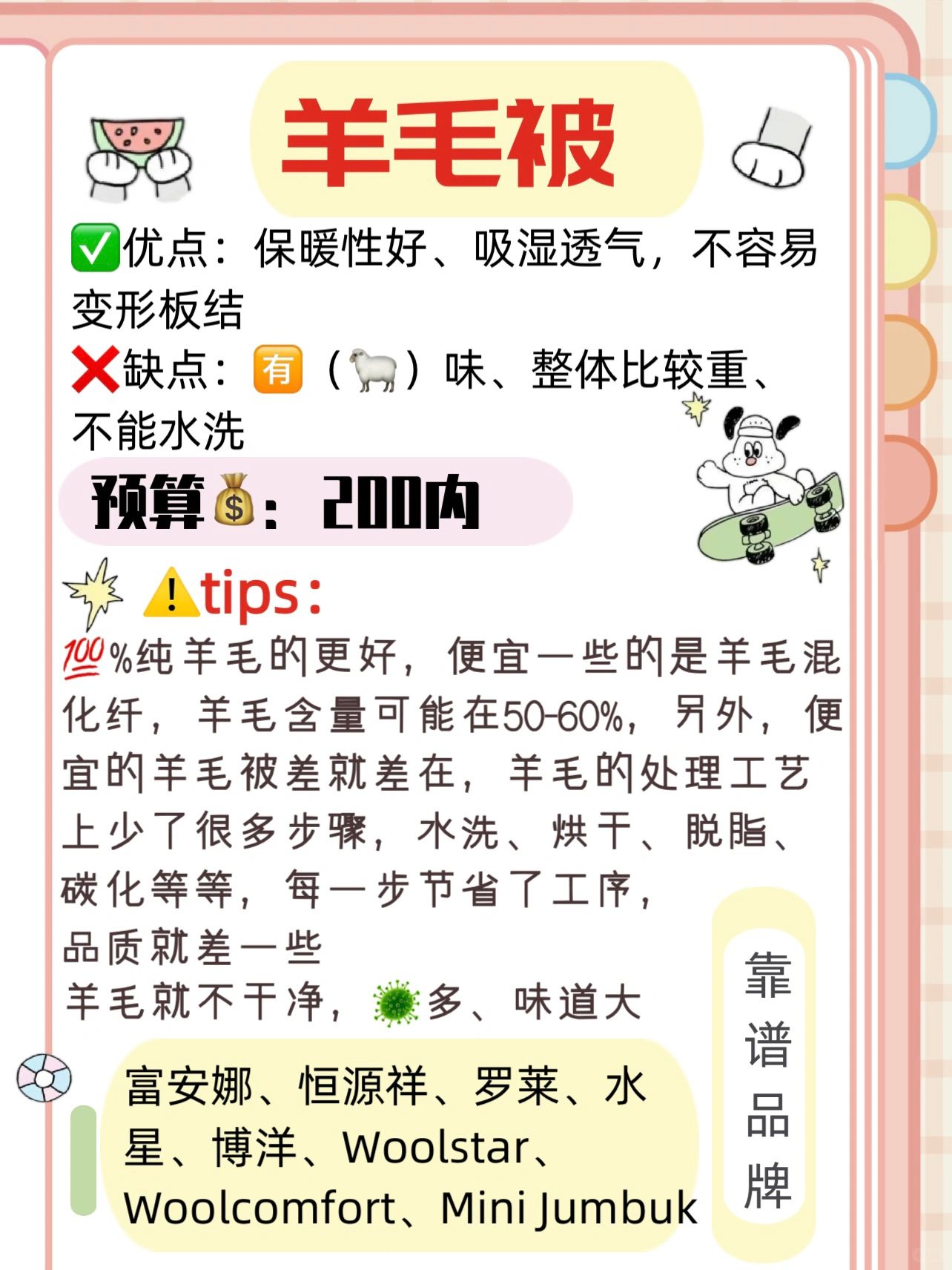 靠谱品牌:富安娜、恒源祥、罗莱、水星、博洋、Woolstar、Woolcomfort、Mini Jumbuk
